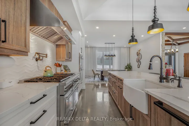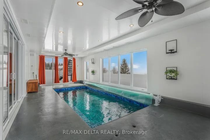 +"PublicRemarks": "This stunning bungalow spans over 6,785 sqft of living space, complemented by a spacious 1,639 sqft triple car garage. Step inside to be captivated by the stunning vistas of the Ottawa River. The gourmet kitchen features Thermador appliances, a large island, a walk-in pantry, and ample storage.The primary bedroom is a private retreat, offering direct access to the deck, a generous walk-in closet, and a luxurious 5-piece en-suite bathroom. The main floor also includes a bedroom, a bathroom, and a laundry room, all exuding a sense of luxury and comfort. The walk-out basement is an entertainer's paradise, featuring an indoor in-ground pool and a spacious family room with a fully equipped bar. The basement offers two more bedrooms, a bathroom, and access to the basement of the garage, which includes an equipment elevator. Nestled right on the Ottawa River, this exquisite home is ready to welcome you. See link for more info, video + pictures. Paved (fall 2025)"