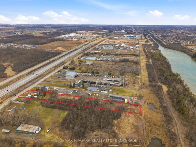+"PublicRemarks": "Strategic industrial development opportunity with premium QEW exposure in one of Niagara Falls' fastest-growing employment corridors. Positioned minutes from the Mc Leod Road commercial hub anchored by Costco, Rona and Walmart, and in close proximity to the new Niagara South Hospital, this corridor continues to see significant public and private investment. The approximately 94.36 x 812 ft parcel is designated Prestige Industrial under the Niagara Falls Secondary Plan, allowing up to 60% lot coverage and a broad range of permitted uses including winery, new or used automobile dealership, adult entertainment, warehouse/distribution, and nursery operations. Auxiliary buildings includes a side-by-side duplex offering interim holding income potential. With exceptional depth, visibility, and flexible zoning, this is a rare opportunity to secure scale and frontage in a high-growth node poised for continued expansion."