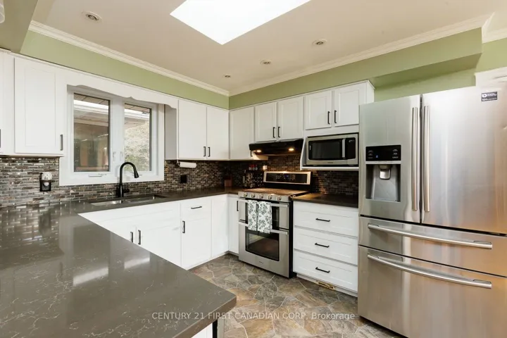 +"PublicRemarks": "This home offers the perfect blend of country charm and modern convenience on its 0.84-acre lot. Walk through the front door into the main-floor open-concept kitchen, dining area, and family room. The kitchen is designed for family living and entertaining alike, featuring quartz countertops and stainless-steel appliances. This level also provides inside access to the attached garage, patio door access to the back deck, and overlooks the lower living room. Just up the stairs, you will find three bedrooms and a spacious 4-piece bathroom with a large tub. The lower-level family room features a gas fireplace, a bar, and plenty of space for lounging, or entertaining. This level also includes a convenient 3-piece bathroom with laundry. In the basement, you will appreciate all the space for your storage needs with direct access into the garage. One of the unique features of this property is the spacious deck, covered by a cathedral ceiling and tempered glass side panels. It provides beautiful views over the backyard while still feeling connected to the outdoors. For the hobbyist or DIY enthusiast, there is an 18' x 32' vinyl-sided hobby shop with a steel roof, concrete floor, insulation, and a woodstove for heat. This makes for a fantastic year-round workspace or a great place to store a classic car. Major ticket items have been updated for peace of mind and comfort, including a metal roof (2024), furnace (2024), central air conditioning (2020), and the lower bathroom with laundry (2022). Enjoy the convenience of 200-amp electrical service, municipal water, natural gas, fiber-optic internet, all while living just minutes from the small-town amenities of West Lorne. The property is also a 10-minute drive to Port Glasgow and offers easy access to Highway 401 for commuting to London, St. Thomas, or Chatham. 24565 Pioneer Line is a welcoming home with thoughtfully designed indoor and outdoor spaces where everyone can find something to enjoy."