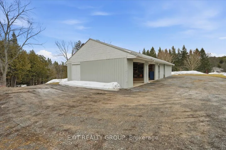 +"PublicRemarks": "Amazing investment opportunity! This side-by-side duplex sits on a beautiful 7.9-acre country property and offers incredible versatility for homeowners, investors, or multi-generational living. Live in one unit and rent the other, separate hydro meters with 200-amp service for each unit, separate heat pumps, separate laundry and separate entrances all under one ownership and zoned semi-detached. Bonus high speed Bell Fibe internet! Unit #1 features a bright main level with 3 bedrooms, a full bathroom, and an open-concept living, dining and kitchen area with sliding doors leading to a four-season sunroom. From here, step out to the deck and enjoy peaceful views of the surrounding property, with a convenient side door providing access to the yard. The walk-out lower level offers additional living space including a large rec room with wood-burning stove, a spacious den, a fourth bedroom, and a 3-piece bathroom. This unit has main floor laundry and central air conditioning. Unit #2 includes a main-level kitchen, living area, and bedroom, while the lower level offers a second bedroom, a large rec room and 2 pc. washroom providing a comfortable layout for tenants or extended family. This unit has air conditioning via the heat pump and lower level laundry. The property is well-equipped with a drilled well approximately 80 ft deep (never run out of water) and features exceptional outbuildings, including a 30' x 40' detached workshop and a 25' x 30' garage, both with 100-amp service-perfect for hobbies, storage, or business use. The workshop, garage, and house have steel roofs. Enjoy spectacular views from the sunroom and decks, along with mature fruit trees including plum, apple, and pear. A large circular driveway with parking for up to 20 vehicles adds further convenience. Ideally located just 4 minutes to town, this property offers the perfect balance of peaceful country living with close-to-town convenience. A rare opportunity with endless potential!"
