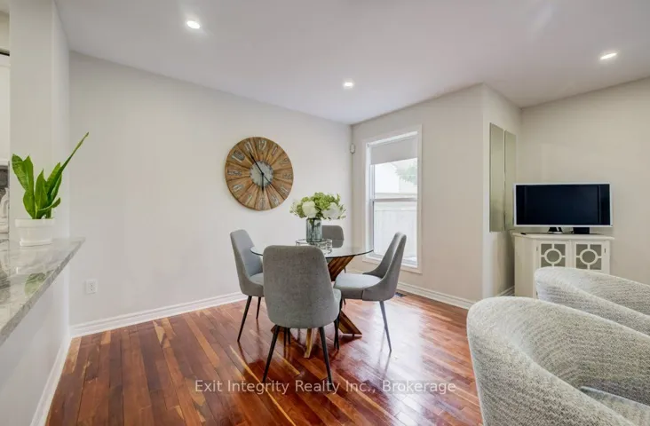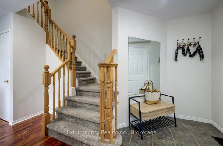 +"PublicRemarks": "WORTH THE BUY. This move-in ready freehold end-unit townhome with combined 2,000 sq ft of indoor living space and an oversized pie-shaped backyard is a rare find. Newly painted, and carpet-free throughout, with exception of new carpeted stairs for added safety. Main floor opens with spacious foyer, open-concept kitchen with quartz countertop and stainless-steel appliances. New sliding doors lead to the backyard, creating a seamless indoor-outdoor flow. Upstairs, three spacious bedrooms, and two modern full baths, perfect for family or for professionals that desires extra space. The furnished multi-purpose basement with wet bar, corner gas fireplace, and powder room - whether for entertainment, to relax, use as a gym, perfect spot for podcast or home office. The enclosed oversized backyard has a deck and two large sheds - for additional storage and potential workshop for hobbies or projects. Whether you are a pet lover or garden enthusiasts or both, you will love the spacious yard space. Attached garage with built-in shelves and side door. Newly paved private driveway that can park two vehicles. For additional convenience motion-detection lights front and back of house, programmable light switches with dimmers, doorbell with camera, wired smoke detectors and keyless entry. This spacious, furnished home set on a private street and sought after neighbourhood offers privacy, functionality, and convenience - just minutes from schools, parks, golf course, shopping and Hwy 401."