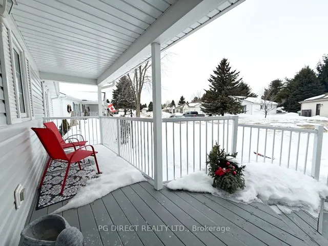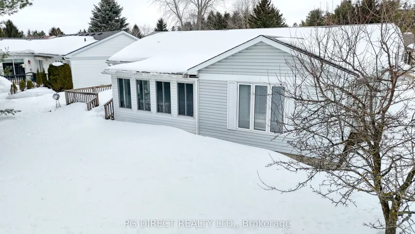 +"PublicRemarks": "Visit REALTOR website for additional information. This two bedroom, two bath, Wellington model bungalow in the Pine Meadows Community has been meticulously cared for. The bright and sunny living room has an electric fireplace, hardwood floors, and a cathedral ceiling giving it an even more spacious feel. The hardwood continues in the kitchen which has solid wood cabinetry, a pantry, plenty of storage, and a water purification system. The spacious dining room across from the kitchen has hardwood flooring as well and offers plenty of room for family gatherings. The second bedroom has ensuite privileges and many upgrades, such as a new comfort height toilet (2022) , a grab bar in the shower, and easy to clean vinyl flooring. The large primary bedroom has a lovely view to the treed backyard and its ensuite has a shower-tub combination. A comfort height toilet was installed in 2022 in this washroom as well. Another spot to relax is in the generous 15.6' X13.4 ' three season sunroom which walks out from the living room. This room was completely rebuilt in 2020. In 2025 the ceiling and walls were replaced, the room got a fresh coat of paint and new LVP flooring. The sunroom walks out to a beautiful wooden 10' x 10' deck. There is a one car garage from which you can enter the hallway of the home - very convenient for unloading groceries, etc. A first floor laundry with new GE appliances completes this level of this lovely home. The full basement houses a new (2024) Geo-Solar heat pump. This level is completely unfinished and ready for you to make it whatever you choose. Pine Meadows is a land lease active adult lifestyle community located east of Fergus. Land Lease: $769.98 Maintenance: $612.00"