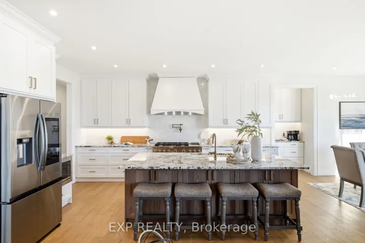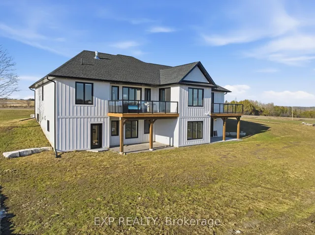+"PublicRemarks": "Wide-open views, custom craftsmanship, and approximately 5,007 sq ft across two finished levels make this 2025 bungalow a standout. Set on 1.81 acres, this 4-bedroom, 4-bath home offers approximately 2,442 sq ft on the main level per floor plans, with hardwood flooring, oversized windows, a dramatic stone fireplace with built-ins, and an open layout that feels bright, grounded, and a dream to live in. The kitchen is a true centrepiece with custom cabinetry, granite countertops, a large island with seating, a 48-inch dual-fuel range, custom hood, pot filler, and coffee bar. Just beyond, the dining area opens to a glass-railed deck with peaceful country views. The main floor also delivers the everyday function buyers want: a private primary retreat with separate deck access, walk-in closet, and spa-inspired ensuite, plus across the split layout there are three additional bedrooms-including one currently staged as an office with its own window and closet-beautiful secondary baths, and a polished laundry/mudroom with access to garage. The fully finished walkout lower level adds approximately 2,565 sq ft per floor plans and gives this home serious flexibility, with a second kitchen, wet bar, custom wine room, fireplace, gym area, games space, and a separated studio apartment with full bath, and generous room for living and sleeping space. Use the lower level to unwind, and add income or accommodate extended family. A fully insulated three-car garage with epoxy floor, multiple covered and open-air outdoor spaces, and sweeping rural surroundings complete a home that feels elevated, expansive, and ready for real life."