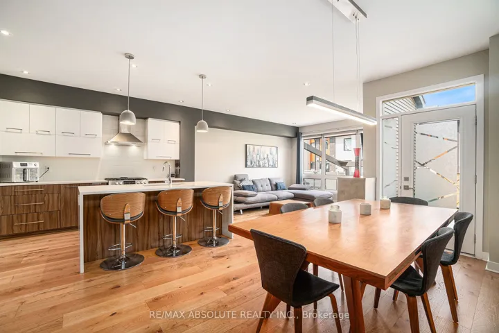 +"PublicRemarks": "Welcome to this stunning corner-unit townhome in the heart of Stittsville. From the moment you enter this bright, sun-filled home, you'll notice the upscale finishes, soaring ceilings, and thoughtfully designed layout that blends style with everyday comfort.The main level features a tiled foyer and convenient powder room, leading into an open-concept living space highlighted by rich hardwood flooring throughout two levels. The dramatic living room boasts floor-to-ceiling windows and an impressive open-to-above design that fills the home with natural light, while a cozy electric fireplace creates a warm and inviting atmosphere.The chef-inspired kitchen is perfect for entertaining, offering quartz countertops, stainless steel appliances, a gas stove, pot lighting, a spacious island with breakfast bar seating, and generous pantry cabinetry. The adjacent dining area opens through sliding doors to a fully fenced private backyard with a gas BBQ hookup-ideal for outdoor dining and relaxing.Upstairs, the spacious primary suite features a large walk-in closet and a spa-like ensuite complete with an oversized glass and tile shower. Two additional bedrooms, a modern 4-piece bathroom, and convenient second-floor laundry provide both functionality and comfort for family living.The finished basement adds valuable living space with a versatile recreation room perfect for a home gym, media room, or play area, along with ample storage.Additional highlights include Smart Home features such as a Nest thermostat. As a corner unit, the property offers extra windows for abundant natural light, a private driveway, enhanced privacy, and a larger outdoor area.Ideally located just steps from trails, parks, schools, shopping, and dining, this home offers the perfect balance of tranquility and convenience in one of Stittsville's most desirable communities."