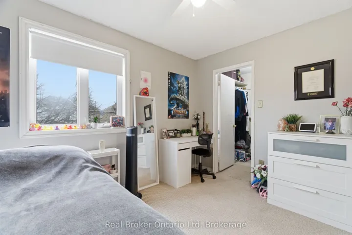 +"PublicRemarks": "Student Living Done Right - Space, Privacy & Location All Covered. *NEW FLOORING & FRESH PAINT WILL BE COMPLETED BEFORE MOVE-IN*. 4 bedrooms, two parking spaces and easy access to the University of Guelph. Located in a well-managed complex close to Stone Road Mall, shopping, restaurants and public transit, this townhome offers a convenient and comfortable living option for students. The main level features ceramic flooring for easy maintenance and a bright living space with a functional layout for shared living. The second level offers three generous bedrooms including a primary bedroom with a walk-in closet and semi-ensuite access. Bathrooms are located on every level for added convenience. The finished basement includes a fourth bedroom with its own washroom and an egress window, offering additional privacy and flexibility. Enjoy a private patio overlooking green space."
