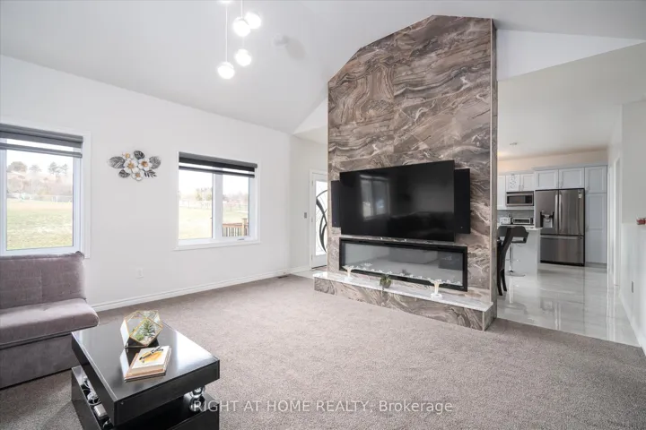 +"PublicRemarks": "Welcome to 172 Glens of Antrim Way, a beautifully designed detached bungalow set on approximately 1 acre in an exclusive enclave of just six custom homes, featuring the highly sought-after "Brimely" model. Offering the perfect blend of privacy, space, and modern comfort, this home is ideal for those seeking peaceful country living without sacrificing convenience.Step inside to a bright open-concept layout designed for both everyday living and entertaining. The impressive great room features soaring ceilings and a striking modern fireplace feature wall, creating a warm and inviting focal point. The chef-inspired eat-in kitchen is both stylish and functional, complete with sleek white cabinetry, modern appliances, a contemporary backsplash, pantry storage, and a large centre island perfect for gathering with family and friends. A convenient walk-out leads to the patio and expansive backyard, creating seamless indoor-outdoor living.This thoughtfully designed bungalow offers 3 spacious bedrooms and 2 full bathrooms. The primary suite serves as a private retreat, featuring a generous walk-in closet and a luxurious upgraded ensuite with heated floors. The additional bedrooms are bright and well-proportioned, ideal for family, guests, or a home office.The property welcomes you with a long private driveway accommodating up to 10 vehicles and a charming front porch that enhances the home's curb appeal. The expansive one-acre lot provides exceptional privacy and endless potential for outdoor enjoyment.Located under an hour from the GTA and just minutes from the charming lakeside town of Cobourg, you'll enjoy easy access to shops, restaurants, golf, and Lake Ontario while still enjoying the tranquility of country living.A rare opportunity to own a modern custom bungalow on a private acre in a sought-after community."