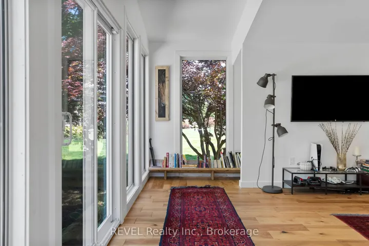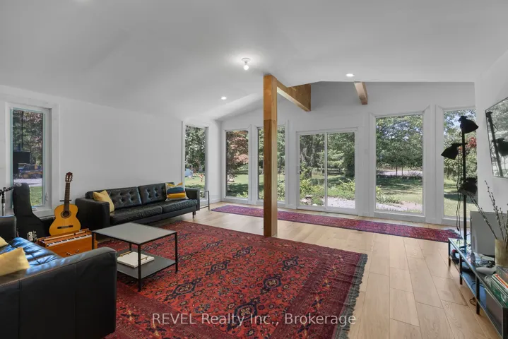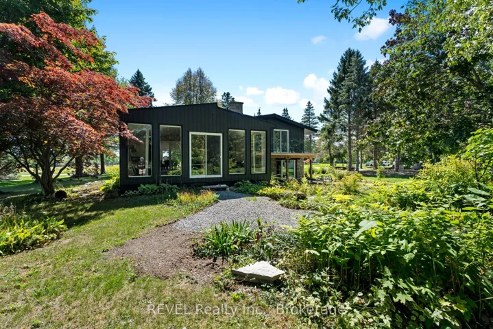 +"PublicRemarks": "Set on nearly two acres and surrounded by mature trees, this beautifully designed contemporary home offers the perfect balance of thoughtful upgrades, open living spaces, and exceptional outdoor amenities. Inside, the bright open-concept kitchen, living, and dining areas create a welcoming hub for everyday living and effortless entertaining. The home features 3 bedrooms, 2 bathrooms, a finished basement with in-law potential, spacious entry/mudroom, and an additional family room, offering plenty of room for family and guests to relax and unwind. A standout feature of the property is the expansive lot, which offers the flexibility and space to accommodate an additional accessory dwelling unit, creating exciting possibilities for extended family, guests, or potential rental income. Step outside and enjoy the beautifully manicured grounds from multiple outdoor patios, including a private retreat off the primary suite enclosed with custom glass railings that provide peaceful, unobstructed views of the surrounding property.The backyard is designed for both recreation and relaxation. Enjoy your own multi-sport court for tennis, pickleball, or basketball, unwind by the pond or fire with a morning coffee, work on projects in the garage/workshop, or tend to chickens in the coop. When it's time to gather with family and friends, the custom wood-fired pizza oven and grill is sure to become the centrepiece of memorable backyard BBQs. With space to explore, room to grow, and possibilities as wide as the property itself, this exceptional home is ready to welcome its next chapter."