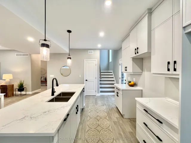 +"PublicRemarks": "**Limited-time savings-the NEW enhanced 13% HST rebate is already included in the list price** Modern design and elevated craftsmanship come together in this brand-new 3-bedroom, 2-storey home by Cobblestone Homes, a trusted Belleville builder known for quality construction and attention to detail. Backed by a full Tarion Warranty, this home offers added peace of mind for years to come. Tucked at the end of a quiet cul-de-sac on a spacious pie-shaped lot, this 1,584 sq. ft. Brookfield model showcases thoughtfully selected, high-quality finishes throughout. Step inside to a bright, open-concept main floor with 9' ceilings and natural light from large windows and complemented by pot lighting throughout. Hardwood flooring extends through the main living areas, while ceramic tile is featured in the home's wet spaces. The kitchen is both functional and well-appointed, featuring quartz surfaces, a generous island, and ample space for cooking and gathering. The adjoining dining and living areas create an easy flow suited to both daily living and entertaining. Upstairs, you'll find three well-proportioned bedrooms, including a spacious primary suite. The ensuite bathroom is a true retreat, featuring a glass and ceramic shower, adding a touch of luxury to your daily routine. The unfinished basement offers excellent future potential, with a rough-in for a bathroom and space to accommodate an additional bedroom and rec room. Exterior details are equally well considered, with a combination of stone and wood grain accents, a stamped concrete walkway and porch, paved driveway, sodded yard, and a double-car garage with insulated door, opener, and a convenient side entrance. The four-car driveway, with no sidewalk interruption, adds extra flexibility. Located in the desirable Potters Creek neighbourhood, this home is close to parks, schools, and conservation areas, with an easy commute just minutes from CFB Trenton."