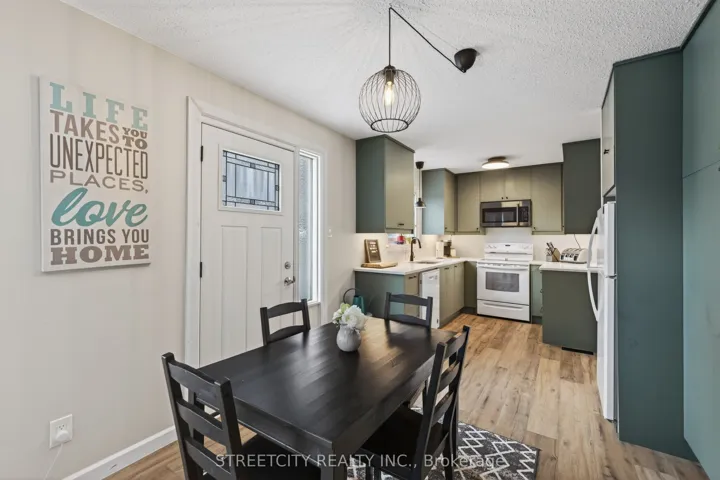 +"PublicRemarks": "Stylish 3 bedroom, 1.5 bathroom townhouse offering comfortable, low maintenance living in Northwest London. The fabulous kitchen features modern cabinetry, clean finishes, and a functional layout, opening to a bright dining and living area with updated flooring and a striking fireplace feature wall that adds warmth and character. A patio door leads to a private courtyard patio providing private outdoor space. Upstairs offers three well sized bedrooms including a spacious primary with a walk-in closet, along with a 4 piece bathroom, while the main floor powder room adds everyday convenience. The complex includes a community pool and condo fees that cover water, adding extra value. Close to shopping, schools, parks, transit, and everyday amenities, making this a great option for first time buyers, families, or investors."