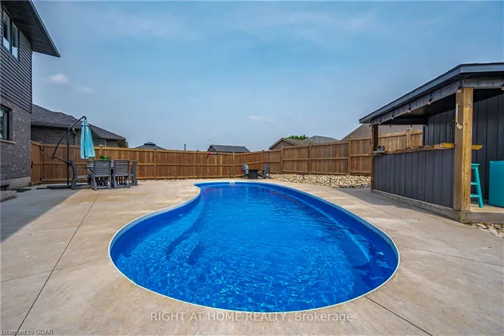 +"PublicRemarks": "74 Farley: Where Custom Craftsmanship Meets Resort-Style Living. Experience the perfect blend of luxury and comfort in this meticulously maintained 2018 custom home by renowned builder James Keating. Thoughtfully crafted with timeless design and high-end finishes, this residence is an entertainer's dream, boasting over 3500 sq ft of living space, offering five spacious bedrooms and four bathrooms across a refined, open-concept floor plan. The main level makes a grand impression with soaring 9-foot ceilings and rich hardwood flooring. At its heart lies a chef's kitchen featuring quartz countertops, premium appliances, and a custom gathering island that flows seamlessly into a family room anchored by a stunning feature wall. For those working from home, the separate dining room doubles as a sophisticated executive office. The elegance continues upstairs with four generous bedrooms, including a primary retreat featuring a walk-in closet and a newly updated spa-inspired ensuite. The lower level extends the living space further with a professionally finished basement, complete with a custom wet bar, large rec room, and an additional bedroom with an egress window. Step outside into your private backyard oasis. Whether hosting summer soirées or enjoying quiet evenings, the heated saltwater pool and charming cabana create a vacation-at-home atmosphere. Located in a premier Fergus neighborhood, you are moments from top-tier schools, parks, and charming local amenities."