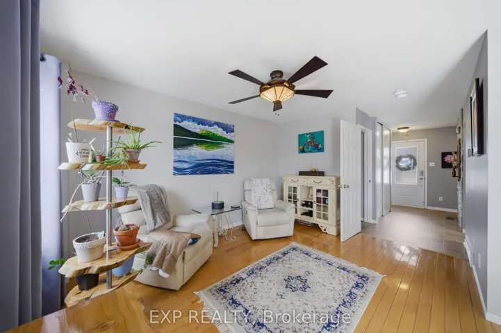 +"PublicRemarks": "This bright and spacious 3-bedroom, 3-bath home sits on a pie-shaped lot in Rockland and features a welcoming front porch that leads into a large entry with a generous closet, opening into a living room filled with natural light. The kitchen, equipped with stainless steel appliances, flows seamlessly into the dining area, which offers walk-out access to the fully fenced rear yard - a perfect space for entertaining or relaxing. A convenient powder room completes the main level. Upstairs, the primary bedroom is accompanied by two additional bedrooms and a full bathroom, providing ample space for family living. The finished basement adds extra living space with a family room, a laundry area/powder room with a rough-in for a second full bathroom, plus a cozy pellet stove for warmth. Outside, the fully fenced backyard includes a gazebo for outdoor enjoyment. With plenty of living space, this home is ideal for families seeking comfort and convenience in Rockland."