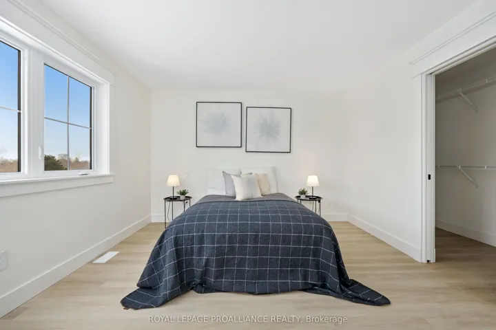 +"PublicRemarks": "Nestled in the quaint village of Colborne and crafted by Fidelity Homes, this exquisite modern farmhouse combines contemporary elegance with rustic charm. Ideally located just minutes from downtown and 5 minutes south of the 401, this 2,391 sqft, 2-storey detached home boasts 4 bedrooms, 2.5 bathrooms, and thoughtful touches to enhance your living experience. Step into a private foyer with a convenient closet for all your storage needs. The main hallway leads to the heart of the home-a bright, open-concept kitchen, living, and dining area designed for effortless entertaining and family gatherings. A sliding door from the living room opens to a spacious back deck, perfect for outdoor relaxation. The main floor also features a mudroom with a second closet for additional storage, conveniently located off the 2-car garage entry. A powder room provides easy access for guests and family. The upper level includes three generously sized bedrooms, a flex space ideal for a home office or playroom, and a well-appointed primary suite featuring a large walk-in closet and a luxurious ensuite bathroom. A full bathroom and a conveniently located laundry room complete this family-friendly floor plan. This home comes packed with quality finishes including: Maintenance-free, Energy Star-rated North Star vinyl windows with Low-E-Argon glass; 9-foot smooth ceilings on the main floor for a spacious, airy feel; Designer Logan interior doors with sleek black Weiser hardware; Craftsman-style trim package with 5 1/2baseboards and elegant casings around windows and doors; Premium cabinetry; Quality vinyl plank flooring; Moen matte blackwater-efficient faucets in all bathrooms; Stylish, designer light fixtures throughout & a 7 Year Tarion New Home Warranty"