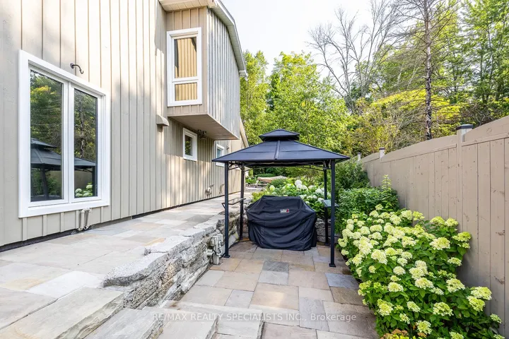 +"PublicRemarks": "Extensively upgraded bungaloft in Canterbury Common-an active adult lifestyle community in vibrant Port Perry-offering over 2,000 sq ft and a rare interior lot with real privacy. The main floor layout balances open living with defined spaces. 9' ceilings run throughout, with a cathedral ceiling in the living area, gas fireplace, and walkout to the backyard. The outdoor space is a standout-private and mature, with hedging and trees creating a setting not often found on interior lots. A newly built 36' x 12' deck, gazebo (2023) and pergola (2025) span the back of the home and offer more zones to live and entertain. A clean, modern kitchen renovated with quartz countertops, wood cabinetry, double pantry, and new stainless steel appliances (2023), opens to a bright dining area with direct access to the backyard. Just off the kitchen, main floor laundry features a new LG Thin Q stacked washer/dryer (2023). The primary suite includes a walk-in closet and ensuite, with a second bedroom and updated main bath completing the main level. California shutters are carried throughout. Upstairs, the loft is a true extension of the home - well-defined and private, offering flexible space for a second living area, office, or a comfortable place for visiting family. The partially finished basement adds a rec area, workshop, bonus room, and generous storage, with new luxury vinyl plank flooring. Additional updates include a custom Craftsman front door (2023), new front windows and window coverings (2026). *Parking for two cars in the driveway.* A fully renovated home in a highly sought-after community with clubhouse and pool, all within walking distance to the Port Perry waterfront, shops, and restaurants along Lake Scugog."