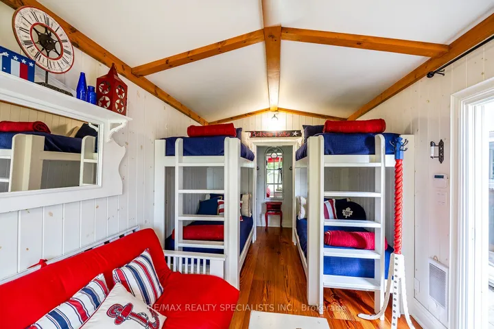+"PublicRemarks": "BALSAM LAKE - Stunning Turnkey Waterfront Retreat This spectacular 5-bedroom, 3-bathroom fully furnished home on Balsam Lake offers luxury lakeside living at its finest. Every detail has been thoughtfully curated, and all furnishings and accessories-inside and out-are included, making it truly turnkey. The heart of the home is a chef's dream kitchen, featuring an AGA Swedish range, a large center island, and panoramic views of the lake and professionally landscaped yard. The spacious open-concept living area boasts vaulted ceilings, a custom floor-to-ceiling fireplace, and a wet bar, all perfectly positioned to capture the stunning lake views. Enjoy breathtaking vistas from most rooms in the house. Step outside to a beautifully landscaped oasis, complete with privacy fencing, a 6-person hot tub, a charming Bunkie, and an impressive 1,000 sq/ft Houston Marine aluminum removable dock. Whether you're lounging on the walk-in sand beach or diving off the dock into 6 feet of clear water, this property is the ideal family getaway or year-round residence.Highlights:5 Bedrooms, 3 Bathrooms Vaulted ceilings & custom fireplace Chef's kitchen with AGA Swedish range Wet bar & open-concept design Professionally landscaped grounds6-person hot tub & Bunkie Walk-in sand beach & deep water at the dock1,000 sq/ft aluminum dock (removable)All interior & exterior furnishings included Just move in and enjoy lake life at its absolute best."