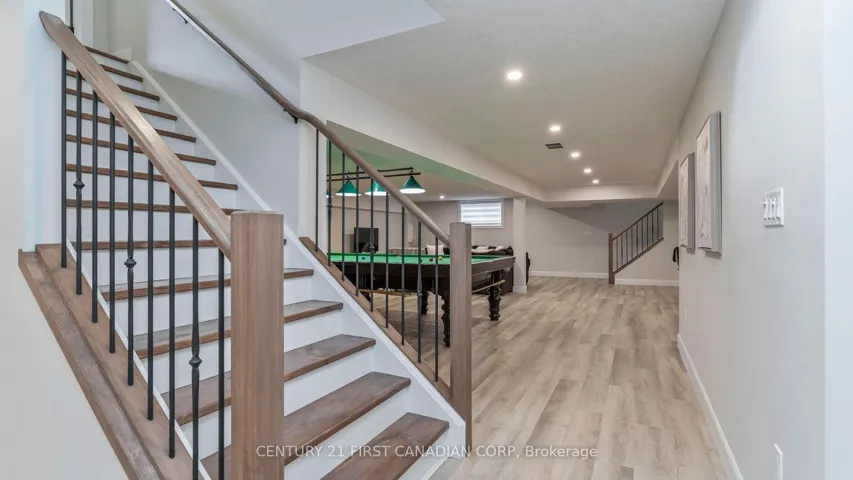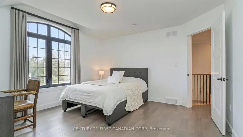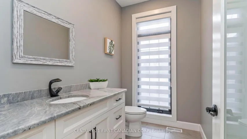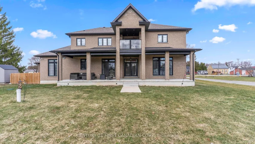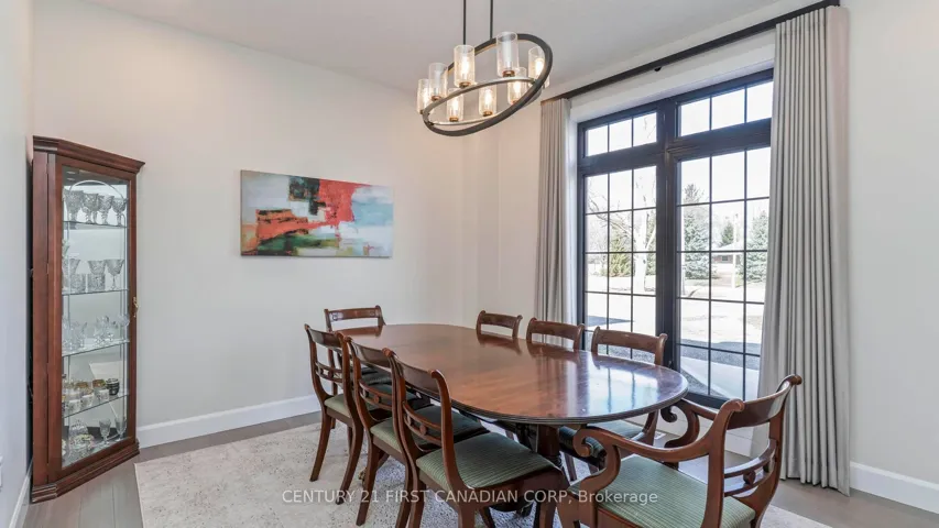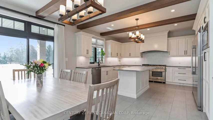 +"PublicRemarks": "Welcome to timeless elegance just 10 minutes North of London with this stunning luxury residence set on a private 1-acre lot. With over 5,500 sq. ft.of living space, this home seamlessly blends classic architectural details with modern sophistication. The primary suite features a spa-like ensuite and a spacious walk-in closet, while the three additional bedrooms each offer private ensuite bathrooms and walk in closets, providing comfort and privacy for everyone.The chef's kitchen is truly the heart of the home, boasting an 8-burner gas stove, double oven, and side-by-side fridge/freezer-perfect for creating culinary masterpieces. Natural light floods the main-level exercise room, while the great room impresses with coffered ceilings, built-in cabinetry, and a welcoming fireplace-ideal for gatherings and quiet evenings alike. The home office features a sliding door, offering a professional space that could easily accommodate clients if needed. A 3-car garage includes a drive-through bay with direct backyard access, plus convenient interior entry to the lower level where you will find an additional 2 bedrooms, 3-piece bath, and an amazing family room which makes it easy to accommodate friends or family for those overnight stays.The standby generator offers comfort to provide seamless power. With its thoughtful layout, luxurious finishes, and spacious setting, this home offers the perfect blend of sophistication, comfort, and lifestyle."