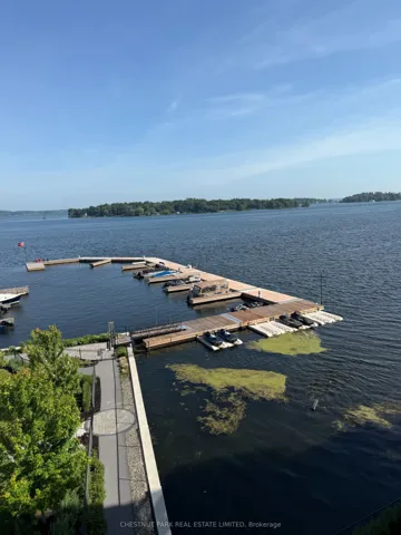 +"PublicRemarks": "The Thousand Islands. Stunning Water Views! Experience upscale living in this exquisite 2-bedroom, 2-bathroom, 2-balcony condo overlooking the majestic St. Lawrence River with breathtaking views across to the U.S. shore. This light-filled suite features an open-concept layout with expansive principal rooms - perfect for everyday living or sophisticated entertaining. Enjoy the best of both worlds with two private balconies, one offering serene, panoramic river views, and the other capturing the endearing sights of the delightful town. The kitchen is a chef's delight, with premium finishes, modern appliances, and plenty of space for cooking and hosting. Every detail in this condo reflects quality and comfort, from the spacious bedrooms to the spa-inspired bathrooms. Every detail in the common areas is perfect including an elegant lounge with kitchen and dining area, a large outdoor terrace and a well equipped gym. In addition there is a fenced dog park on the south, waterfront, side of the building. Whether you're relaxing indoors or sipping coffee on your balcony as the sun rises over the water, this is refined condo living at its finest."