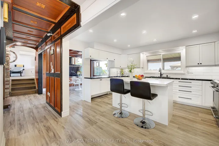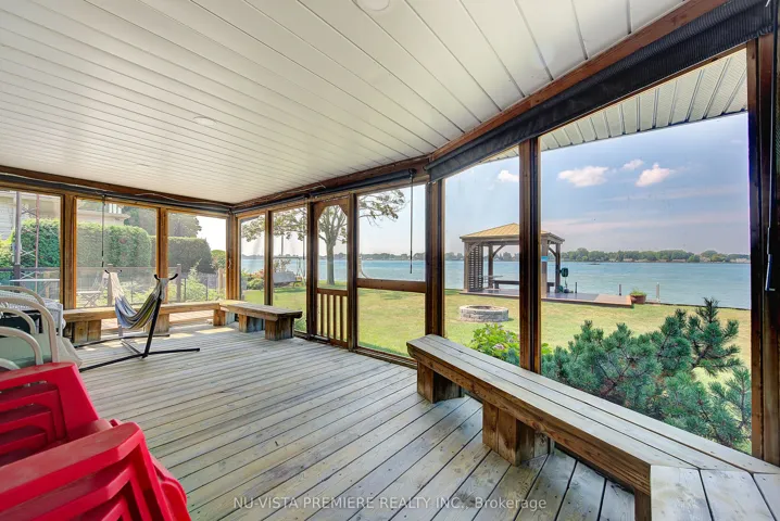 +"PublicRemarks": "VERY RARE FIND!!! 4-season home located on a small island with only 9 other properties-- making it ultra exclusive! The island is serviced by a municipal bridge and offers high-speed fiber optic INTERNET, gas, city water & city sewers making it an ideal place to either live, retire or cottage. Located close to prestigious Fawn Island, this property features panoramic blue-water views on both sides. It includes a private canal and boat slip with a maintenance-free front-yard deck deck. The 5-level split, mid-century modern plan showcases a striking combination of stone, cathedral ceilings, and natural wood, giving it a truly unique feel. The home has been renovated from top to bottom with tens of thousands of dollars in improvements and updates. Enjoy multiple spaces to take in the water views including a huge screened-in Florida room, a 19ft x 25 ft 2nd floor deck off the primary bedroom with stairway access to the rear yard plus stairs AND a slide into the water, as well as a Gazebo deck (built with maintenance free materials) at the water edge. Inside, the home features 3 good sized bedrooms, 3.5 baths, an updated kitchen, a formal dining room, an additional eating area overlooking the lake, and a spacious great room with cathedral ceilings and a stone gas fireplace. The lower level is fully finished and features a games/family room and a full wine cellar clad in natural brick. Technical features include high efficiency split heat pump units in 2023as well as efficient gas water heating. It is very rare to find a waterfront property with its own protected canal for boat and seadoo docking while still enjoying all the amenities of a city property. Located just 4 km to Sombra, 30 km to Sarnia, 40 km to Chatham and 130 kms to London. Call today to book a private viewing of this spectacular property!"