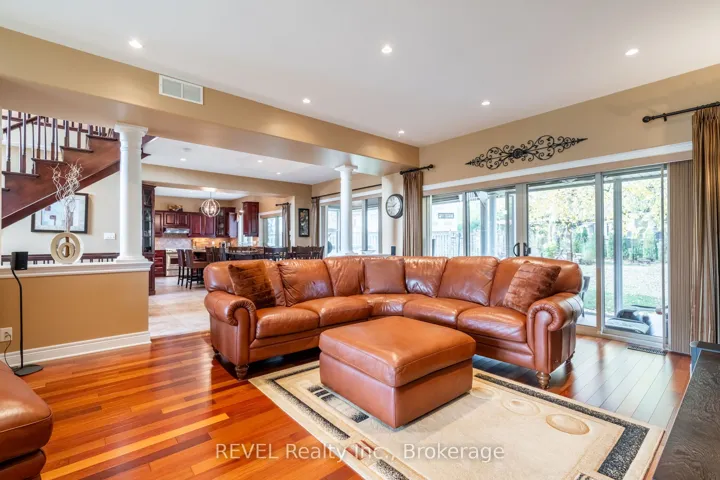 +"PublicRemarks": "Welcome to this exceptional custom-built home located in the highly desirable Futino Estates in the Forestview neighbourhood of Niagara Falls, surrounded by upscale homes and a quiet, family-friendly setting. Offering over 4,500 sq ft of total living space, this meticulously maintained residence has been proudly cared for by its original owner and showcases quality craftsmanship throughout. Step inside to a grand foyer highlighted by a striking staircase, creating an elegant first impression. The upper level features three spacious bedrooms, while the main floor includes a private office that can easily function as a fourth bedroom, offering flexible living options and making four bedrooms above grade. Designed with versatility in mind, the home offers excellent in-law suite potential with a separate entrance and a recently added lower-level living space featuring a full kitchen, living room, bedroom, and private ensuite-ideal for extended family, guests, or multi-generational living. In total, the home offers five bedrooms and four bathrooms. Laundry facilities are conveniently located on both the main floor and lower level. Set on a deep 135-foot lot, the outdoor space offers an enclosed 450 sq/ft screened in covered patio, a pool and endless possibilities for relaxing or entertaining. The heart of the home is the gourmet kitchen, featuring high-end appliances, custom cabinetry, and generous counter space-perfect for everyday living and entertaining. Large windows throughout the home flood the interior with natural light, creating a bright and welcoming atmosphere. Living in Forestview offers more than just a beautiful home-it's a lifestyle choice. Enjoy close proximity to top-rated schools, parks, golf courses, shopping, and quick highway access. You're also just minutes from Niagara Falls, world-class wineries, restaurants, and entertainment, while still enjoying the privacy and tranquility of one of the city's most sought-after communities."