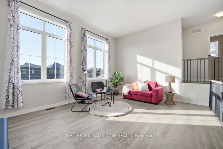 +"PublicRemarks": "This 3-bedroom single-family home in Quinn's Pointe features 9-ft ceilings on both the main and second floors and a striking 15-ft ceiling in the loft-style family room, creating a bright and airy living space with impressive architectural appeal. The home offers a functional layout with spacious living and dining areas and a well-designed kitchen with a large island and breakfast bar, ideal for everyday living and entertaining. The sun-filled loft overlooking the main floor provides a perfect space for a lounge or media area. Upstairs includes three well-sized bedrooms, including a primary bedroom with walk-in closet and ensuite. The fully fenced backyard is great for outdoor enjoyment, and the unfinished basement offers ample storage and future potential. Conveniently located near Strandherd Dr and Greenbank Rd, close to parks, trails, rivers, the Minto Recreation Complex, and excellent schools."
