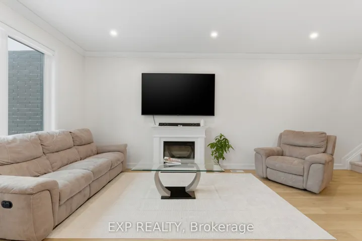 +"PublicRemarks": "Welcome to this beautifully maintained 3+1 Bedroom, 4-Bathroom, 2-Storey Freehold Townhome in the highly desirable Woodland Trails community of North Oakville - a perfect opportunity for first-time buyers and growing families. Offering approximately 2,700 sq ft of bright and functional living space, this home features an inviting open-concept layout with peaceful greenspace views, creating a warm and welcoming atmosphere for everyday living and entertaining. The spacious upgraded kitchen is truly the heart of the home, offering abundant cabinetry, generous counter space, and a grand breakfast bar with storage on both sides - ideal for busy mornings, casual dining, or extra organization. A walk-out to the covered terrace extends your living space outdoors, perfect for summer gatherings and family time. Hardwood floors, a cozy gas fireplace, pot lights, and a solid wood staircase with wrought iron spindles add elegance and warmth throughout. The main level family room features very high ceilings and is above grade, filling the space with natural light and an open feel. This versatile area can serve as a fourth bedroom, home office, or private suite, and presents excellent income-generating potential - a valuable asset for first-time buyers looking to offset mortgage costs. With ample storage, an extra-deep and wide garage, and proximity to top-rated schools, parks, and trails, this move-in-ready home offers space to grow and the flexibility today's families need. A wonderful place to begin your homeownership journey"