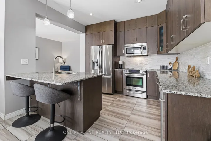 +"PublicRemarks": "Nestled among gorgeous waterfront homes and just steps from Lake Ontario is 70 Galileo Drive, a highly desirable end-unit townhome backing onto peaceful greenspace. The bright main floor features 9-foot ceilings, a bedroom or office space, a cozy gas fireplace, and ample space for gatherings. The eat-in kitchen is both functional and stylish, complete with granite countertops, stainless steel appliances, and modern cabinetry that provides excellent storage and space for everyday living. Upstairs, you'll find two spacious bedrooms and a 5-piece ensuite featuring double sinks, a stand-alone tub, and a glass shower. The finished lower level adds even more versatile living space with an additional bedroom, a 3-piece bathroom, family room, and laundry area. With easy access to the QEW and close proximity to the lake, location truly sets this home apart. Don't miss your chance to make it yours!"