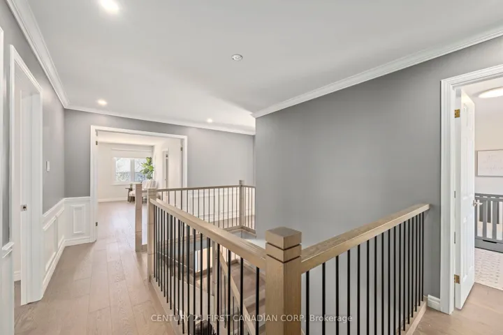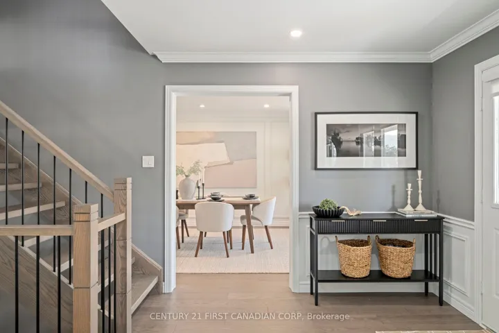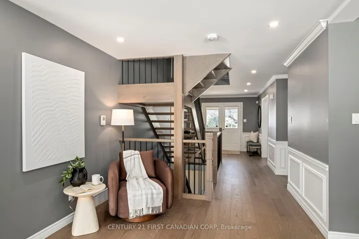 +"PublicRemarks": "Close to University Hospital, Masonville Mall, top schools, and parks, 26 Angus Court sits on a quiet cul-de-sac and offers the opportunity to own a modernized home on a private, mature lot. Step into a light-filled foyer where your eye is drawn to the newly engineered staircase; a focal point that sets the tone for the home. The main level is designed for connection and style, showcasing an open-concept kitchen. This space features custom cabinetry with integrated lighting, built-in appliances, and a large eat-at island with waterfall quartz counters.The layout flows over engineered hardwood floors into a large living room with a gas fireplace and built-in wet bar. The adjacent dining room retains its original wainscoting, adding a traditional feel. A dedicated home office offers space for remote work, while the mudroom and laundry area help keep daily life organized.The upper level offers 4 generously sized bedrooms with ample closets. The primary bedroom features a walk-in closet and a six-piece ensuite.The finished lower level provides a large space for entertaining, with fresh flooring and pot lighting. It includes a media area with a projector and a built-in bar, perfect for game days or movie nights. Other upgrades include a 200-amp panel and garage EV charging option."