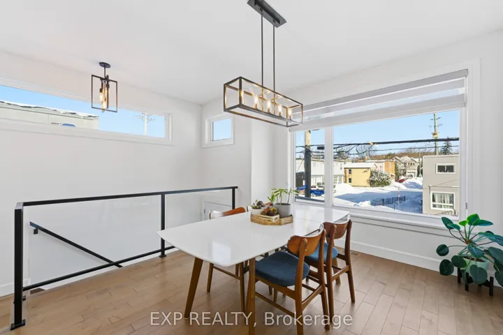 +"PublicRemarks": "Designed for those who value space, comfort, and smart living, this stunning 4bd, 4bth semi-detached home, built in 2020, seamlessly blends contemporary design with elevated luxury. Thoughtfully crafted with architectural detail throughout, the home showcases 9-foot ceilings, hardwood floors, expansive windows w/ custom blinds, & a striking floating mono-stringer staircase with sleek metal and glass railings, flooding the space with natural light.The open-concept main living level is ideal for both entertaining and everyday living, featuring a bright dining area, a chef-inspired kitchen with custom cabinetry, quartz countertops, an oversized island, high-end stainless steel appliances, and a gas range. A generous family room, anchored by a gas fireplace, opens onto a composite deck, creating a seamless indoor-outdoor experience.The upper level hosts a luxurious primary suite complete with a walk-in closet and a spa-like ensuite featuring a double vanity and walk-in shower, along with two additional bright bedrooms, a stylish family bath, and a convenient laundry room.The ground/lower level offers exceptional versatility with above-grade access to a heated garage, heated lower floor , a bedroom, office/family room with heated floors, and a 3-piece bathroom-ideal for guests, or a potential in-law suite. This level also provides direct access to landscaped, fenced backyard.Completing the home is a rooftop composite deck with sweeping city views, adding a rare layer of luxury. Ideally located just moments from downtown Ottawa, Gatineau, the Rideau River, and Beechwood Avenue allowing accessibility to Metro, cafes, public library, top french school and activities within 5-10 mins walking. This residence delivers refined urban living without compromise."