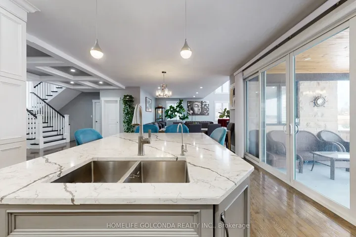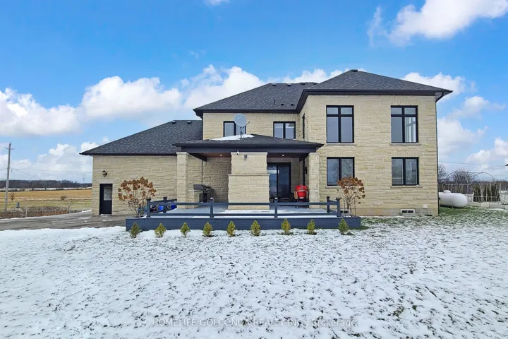 +"PublicRemarks": "This is an unparalleled bespoke executive country estate, featuring 6 exquisite bedrooms and 5 luxurious bathrooms, perfectly situated on a hilltop with sweeping views of the undulating countryside. Every detail of this Hagersville masterpiece exudes exceptional craftsmanship and meticulous design. The exterior showcases custom Arriscraft stone, complemented by a grand covered porch, a double garage with oversized 10-foot doors, and an outdoor entertaining haven equipped with a gourmet kitchen, granite countertops, a Weber grill, a gas fireplace, and a spacious patio.Inside, over 4,932 square feet of exquisitely finished living space unfold. The gourmet kitchen features hardwood flooring, quartz countertops, a custom backsplash, and premium stainless steel appliances. The grand great room boasts 18-foot coffered ceilings and a stunning stone fireplace. The main floor includes a versatile bedroom or office, a convenient laundry room, and a lavish primary suite with a chic ensuite, tiled shower, and expansive walk-in closet. Secondary bedrooms include private ensuites and a shared Jack-and-Jill bathroom. The 8-foot ceiling finished basement offers a sophisticated recreation room, an additional bedroom, and ample storage and utility space.In addition, a newly drilled well ensures safe drinking water and provides for garden irrigation. Ideally located in a safe, friendly community, just 30-minute drive to Costco, No Frills, and Home Depot, and within an hour's reach of London, Waterloo, Mississauga, Hamilton, and Niagara Falls. Homes of this stature are rare-this is a once-in-a-lifetime opportunity."