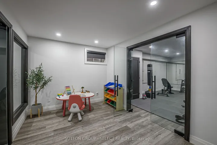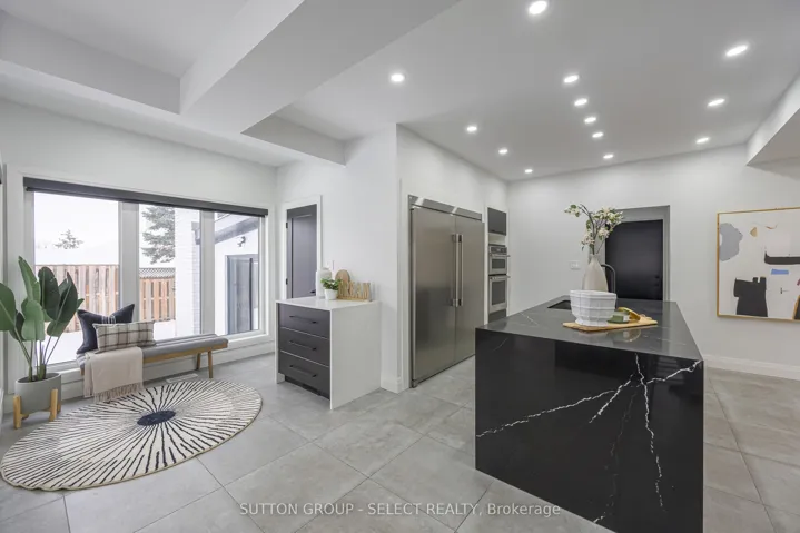 +"PublicRemarks": "Set back on a 100-ft-wide, 0.40 acre lot along coveted Windermere Court West-an exclusive, traffic-calmed lane with homes on only one side overlooking the Elsie Perrin Estate-this fully transformed modern residence delivers 3,177 sq ft above grade and a seductive gallery-style aesthetic. The road is curbed, dead-ended, and services only the resident homes, enhancing peace and privacy. With Western University, University Hospital, and Medway Valley trails in walking distance, the setting is unmatched for buyers who value location. Inside, the main level flows with curated, art-gallery intention: newer windows and doors frame natural light, continuous flooring extends sight-lines, and a sculptural quartz fireplace surround and feature wall creates impact defining the stepped-down living room. The architectural kitchen performs as both workspace and showpiece, offering dual islands, extensive cabinetry, a porcelain/quartz feature wall, and a walk-in pantry. A generous dining area, sunroom/office, impressive main bath, and three bedrooms - including a bold, light-filled primary suite with a beautifully redesigned ensuite-complete the main level. The lower level expands the home's lifestyle narrative with nearly 2,000 sq ft of upscale finished space. Glass partitions showcase a double laundry suite, a glassed-in gym, and a glass-front bonus room ideal for a future wine cellar, adding a boutique-hotel sensibility. A large workout studio, lounge, games area, full bath, finished bonus room, and a private bedroom complete the level. Outside, the deep, fully fenced yard evolves into a private resort: heated salt-water sport-pool, hot tub, and a pool house that flows into a covered lanai-creating effortless outdoor living whether you want shade, shelter from rain, or a serene retreat after a workout. Redesigned front landscaping and lift-height garage ceilings complete this modern sanctuary. Windermere Court West is a rare address-and this is one of its most compelling homes."