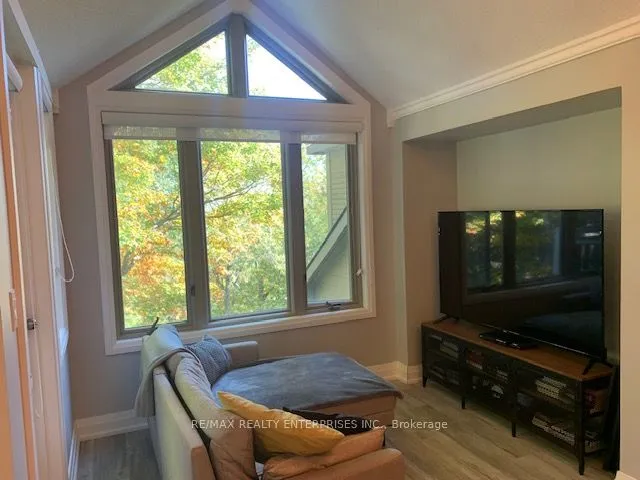 +"PublicRemarks": "Welcome to 4031 Grandview Forest Hill Drive where views of Cookson Bay meet the comfort of Muskoka living. This spacious 1-bedroom, 1-bath condo offers amazing privacy surrounded by mature forest, new Muskoka stone walkway a thoughtfully open concept designed floor plan, featuring a wood-burning fireplace, den, and a walkout to a private deck with a view of the lake. The adjoining dining room also features its own walkout, cathedral ceiling, creating an airy, open feel. The upgraded kitchen is a chefs delight, showcasing granite countertops with a waterfall overlap, a stylish backsplash, breakfast bar seating, stainless steel appliances, and ceramic tile flooring. The bedroom is generously sized with large closets and private sauna, offering a peaceful retreat. Ample storage space throughout the condo ensures practicality matches style. Step outside to enjoy the community swim dock or explore scenic walking trails just steps from your door. The Grandview community is ideally located near top golf courses like Grandview Golf Club and Deerhurst Highlands, Hidden Valley Highlands Ski Area, and the natural beauty of Algonquin Park and Arrowhead Park, all within a short drive. Highway 60 is moments away, and the charming Town of Huntsville is just minutes from home. Whether youre seeking a full-time residence or a Muskoka getaway, Grandview offers the perfect blend of relaxation, recreation, and community."