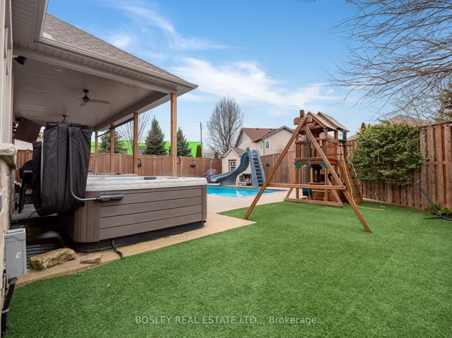 +"PublicRemarks": "Nearly new and completely custom, this oversized bungalow offers a fantastic floorplan of 2,050 sq.ft. on the main floor with another 1,800 sq.ft. downstairs. Tucked away in the north-east corner of Niagara Falls, homes like this are an exceedingly rare find. Arrive home and pull into the exposed aggregate concrete double driveway. The double garage has a door into a main floor mud room. When you enter the front foyer, you'll find a warm and welcoming entrance hall with engineered oak hardwood running through most of this level. The main floor is comprised of three bedrooms including a full primary suite complete with walk-in closet and gorgeous ensuite bathroom with heated tile floors, 5' tiled walk-in shower, stand-alone soaker tub & double vanity. Ceiling heights range from 10' all the way up to 12' in the coffered ceiling in the living room. The kitchen is an absolute stunner with all of the extras you would expect including Cambria quartz counters, custom cabinetry with dovetail joinery, ample pot drawers, and beautiful finishing details. The living room is centered around the gas fireplace with floor-to-ceiling stone surround and reclaimed wood mantel. The lower level is the place to be! With a second kitchen area with stone counter, bar, huge recroom and gas fireplace, you may find your friend circle expands when the big game is on! With luxury vinyl plank throughout, you'll also find another bedroom, playroom, and library, along with another bathroom with a tiled walk-in shower. Head outside to the covered patio adjacent to the heated saltwater pool. The pool has all the bells and whistles including an automatic safety cover, LED lit Laminar jets, bubbler in the bench in the shallow end, Pentair digital control from your phone, heater, and slide! Oh, and there's a hot tub too! So, you may find your friend circle expands yet again during the summer months. Be sure to check out the video tour. This is an absolute 10 out of 10!"