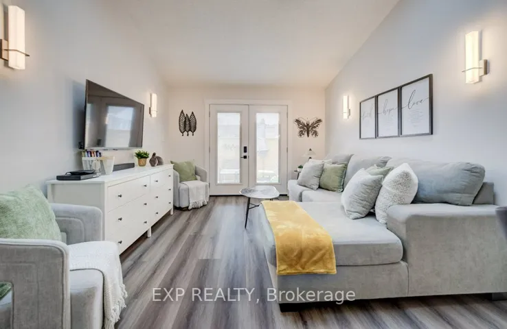 +"PublicRemarks": "This home shows AAA+. Completely renovated from top to bottom this beautiful all brick 3 bedroom bungalow townhome offers stylish, low-maintenance living in a highly convenient location. The bright main level features vaulted ceilings in the living room and an open layout flowing into the eat in kitchen with skylights, creating a great space for everyday living and entertaining. New luxury vinyl flooring runs throughout the main level. New luxury vinyl flooring throughout including new carpet on stairs and lower bedroom. The main floor includes two bedrooms with Jack and Jill access to the updated 4 piece bathroom. The finished lower level provides excellent additional living space a large rec room featuring a custom gas fireplace, a third bedroom, laundry area (2025), ample storage, and a newly completed second bathroom(2025). Recent updates include furnace, air conditioning, updated lighting, windows (2025), patio door and a newly built rear deck with privacy fencing and hook up for gas barbeque. The attached garage offers automatic door opener and convenient inside access to the home. Condo fees include building insurance, common area maintenance, snow removal, lawn care, as well as windows, doors and roof. Ideally located within the complex and centrally situated in the city, walking distance to shopping, close to schools and parks, with quick highway access and transit nearby. A turnkey home offering easy, maintenance free living."