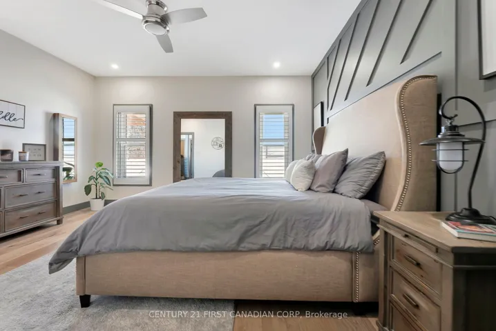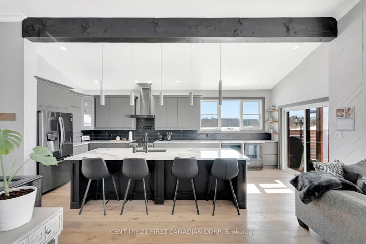 +"PublicRemarks": "Welcome to Your Ultimate Country Masterpiece! Prepare to be absolutely captivated! This isn't just a home; it's a lifestyle statement. Nestled just west of the vibrant, rapidly growing community of Paris, this stunningly updated modern ranch offers the perfect blend of high-end luxury and peaceful country serenity. Built with the legendary Schuit Homes, every inch of this property radiates quality and sophisticated design. The moment you step through the door, you are greeted by a breathtaking open-concept layout. The expansive living room flows seamlessly into a chef-inspired kitchen with all new cabinets, countertops and backsplash. Featuring sleek stainless steel appliances, a center island, and a bright dining nook, it is the heart of the home. Imagine morning coffee by the patio doors or hosting summer BBQs on your covered porch, overlooking nothing but gorgeous, rolling countryside. For formal occasions, the adjacent dining room dazzles with recessed ceilings, rich hardwood floors, and massive windows that bathe the space in natural light. Luxury Meets Functionality The primary suite is a true sanctuary, boasting a massive walk-in closet, California shutters and a spa-like ensuite featuring a freestanding soaker tub and a custom frosted glass/tiled shower. The main floor is rounded out by a convenient laundry room and a chic powder room. Head downstairs to find a finished lower level that feels like a second home! With a huge, cozy rec room, two spacious bedrooms a workout room, and another full bathroom, there is room for the whole family and then some. Extensive 2023-2024 Upgrades Peace of mind comes standard here. Within the last two years, this home has been transformed: Total Exterior Refresh: All windows, entry doors, and the double-attached garage door were replaced (2023/2024). Fresh Interiors: Stunning brand-new flooring throughout both the main floor and basement. Summer Fun: A sparkling new pool installed in 2023 is ready for your enjoyment!"