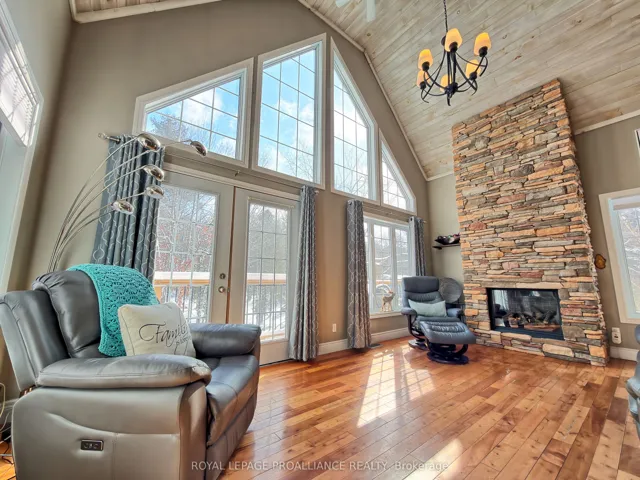 +"PublicRemarks": "Step into this private wooded oasis! This 3 BR Executive Home is situated on just under an acre and has so much to offer! The main floor LR has beautiful vaulted ceilings made of white washed knotty pine and a show stopping propane fireplace with beautiful stonework from floor to ceiling, & walk-out to a full deck that goes across the entire front of the house! The spacious open concept Kitchen has granite countertops with a breakfast bar, additional island, & large eating area with 2 walk-outs leading to the front and back of the house, perfect for growing families. This floor also has a bedroom and 2pc with hardwood flowing throughout this level. The staircase leads you to a stunning vantage point from the second floor looking down and views of the wooded outdoors. PBR and another BR, along with a pc, also has several closets perfect to storage, also with hardwood flooring on the 2nd floor. The views of the mature trees from all of these windows are breathtaking! The basement is ground level with a walk-out to the front with a massive vestibule area with slated flooring that you can use as needed for your family, along with a cozy woodstove. On this floor you will find a 3pc & a large Media/Family Room with upgraded carpet and French doors. To complete this incredible property, is a detached double garage wired for your RV and a stylish & inviting bunkie for you, your kids, or guests. This property is well located between Havelock & Marmora with lots of amenities to choose from, in an area rich in lakes, boating, fishing and lots of local attractions and activities for the family."