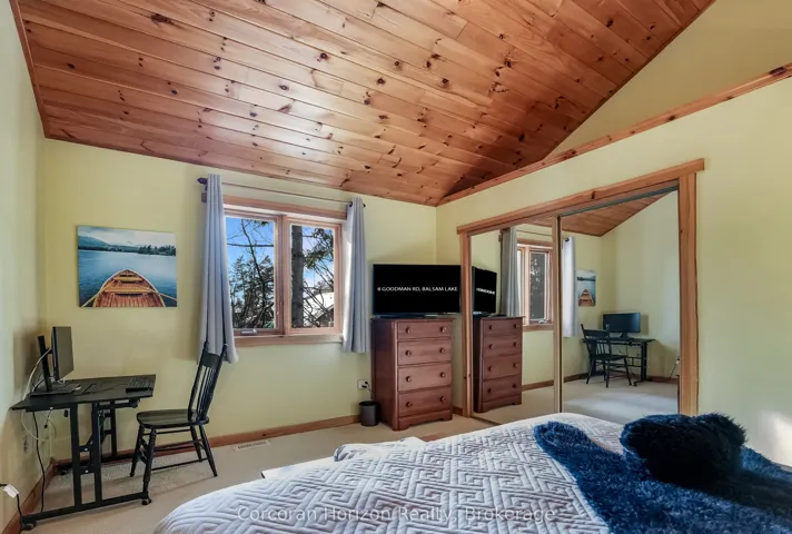 +"PublicRemarks": "Welcome to 8 Goodman Road, a stunning direct waterfront property on the shores of beautiful Balsam Lake. This meticulously maintained Colonial Concepts Log and Timberframe home or cottage exudes pride of ownership and offers the perfect blend of comfort, charm, and lakeside living. The main floor features a spacious primary suite with convenient ensuite privileges, while the open concept kitchen is designed for entertaining, complete with a large island and barseating, ideal for hosting family and friends. Relax by the cozy Napoleon woodstove as you take in serene lakefront views, or unwind with your morning coffee or evening cocktails in the inviting timberframe enclosed sunroom. Upstairs, you'll find two additional bedrooms and a well appointed three piece bathroom with a tiled shower. The upper level family room showcases spectacular panoramic views of Balsam Lake, creating a perfect space to relax and recharge. Storage is plentiful with a detached shed, garage, and a half height basement. Numerous updates add peace of mind, including the sunroom (2015), generator (2015), furnace and A/C (2016), roof (2017), stove (2018), dock lift (2019), septic upgrades (2020), fridge (2020), dock panels (2023), dishwasher (2023), and water pressure tank (2026). Experience the best of waterfront living in this exceptional property."