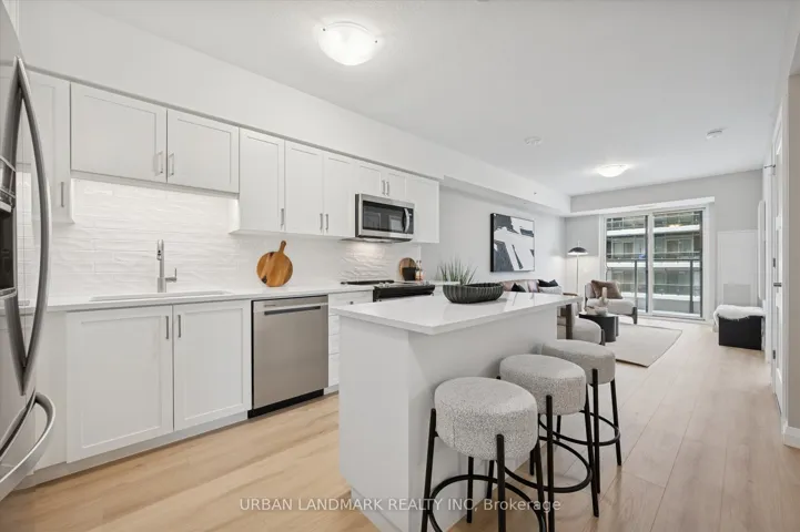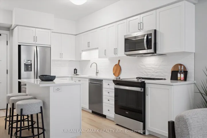 +"PublicRemarks": "A brand new 1-bedroom suite, with parking featuring an open-concept layout, large windows, and upscale finishes throughout. Highlights include upgraded laminate flooring, quartz counters, soft-close cabinetry, 6-piece stainless steel appliance package, in-suite smart home system, and in-suite laundry, and a huge balcony. Premium amenities including fitness centre with Peloton room, co-working lounge, guest suite, pet spa, social club with outdoor terrace & BBQs, 7th-floor sunrise terrace, and piano lounge. Steps to Speed River, downtown Guelph, shops, cafes, trails, GO Transit, and more. 1 parking included."