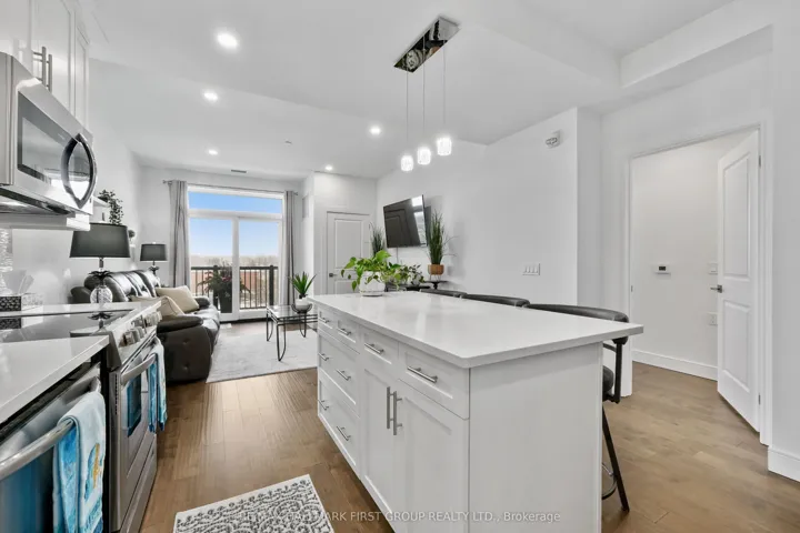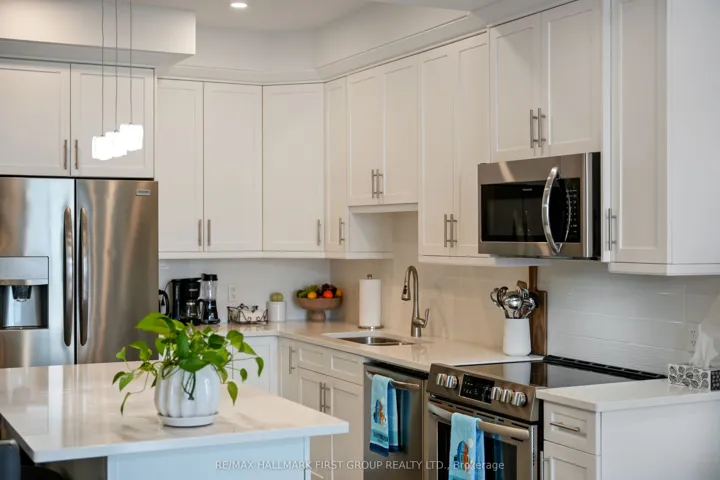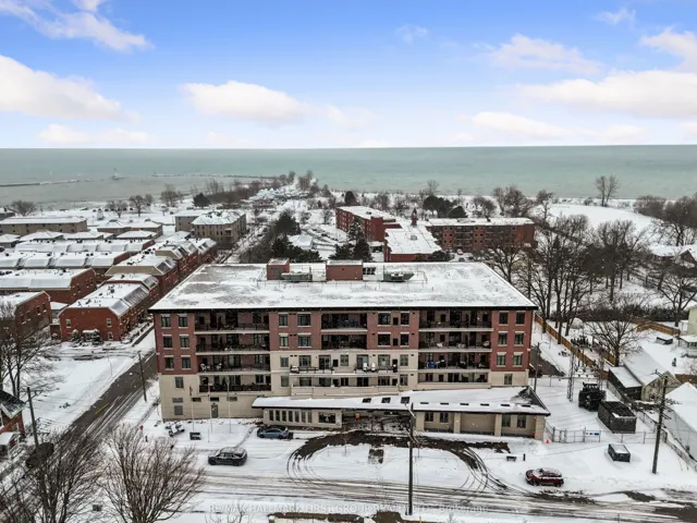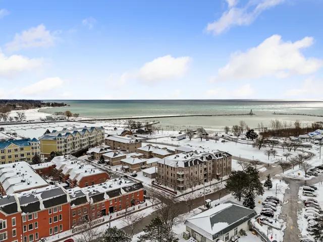 +"PublicRemarks": "Low-maintenance living at its finest, this one-bedroom plus den condo is ideally located just steps from Lake Ontario and downtown amenities and perfectly positioned on the penthouse floor of Harbour Breeze Condominiums, offering an elevated sense of privacy and light. The open front entry offers storage and sets the tone for the thoughtfully designed interior. The open-concept principal living space features high ceilings and a contemporary aesthetic. The living room is highlighted by recessed lighting and a walkout to a private balcony, creating a bright and inviting atmosphere. The kitchen showcases a clean, modern design with matching stainless steel appliances, generous counter and cabinet space, and a central island with a breakfast bar and pendant lighting, perfect for both everyday living and entertaining. The primary suite offers a well-appointed layout complete with a walk-in closet and a private ensuite featuring a double vanity and glass shower enclosure. A versatile den provides space for a home office or guest bedroom, complemented by an additional full bathroom and convenient in-suite laundry. Enjoy outdoor living on the spacious balcony, all while being just moments from downtown conveniences and offering easy access to the 401."