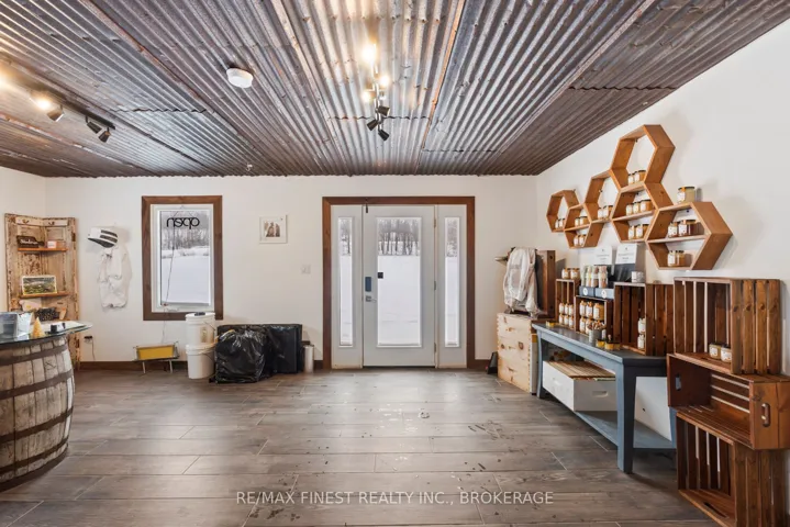 +"PublicRemarks": "Set on a breathtaking 16-acre private estate, this fully renovated 3,000 sq ft bungalow is a rare offering where luxury, tranquility, and possibility converge. Designed for elevated living, the home features soaring cathedral ceilings, exposed beams, and expansive light-filled spaces that create an atmosphere of warmth and sophistication. Two full kitchens, including a beautifully appointed main floor in-law suite, offer seamless flexibility for multi-generational living or refined guest accommodations. A serene sunroom provides the perfect setting for slow mornings and peaceful views of the surrounding landscape. Outdoors, the experience is exceptional. Entertain or unwind beside the heated in-ground pool, enjoy the calm of a private pond with fountain, or explore scenic walking trails throughout the property. The heated and insulated 30x50 workshop offers endless potential for business, hobbies, or premium storage. The fully finished walkout basement adds further versatility, featuring a custom walk-in closet with island and a dedicated potting room with ventilation and drainage, thoughtfully designed for function and lifestyle. Wrapped in privacy yet designed for connection, this is more than a home, it is a legacy property offering space to live, create, and escape."