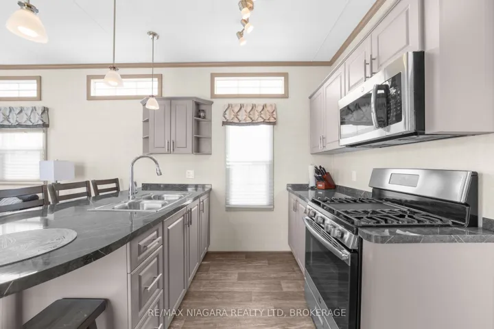 +"PublicRemarks": "Welcome to Vine Ridge Resorts, Unit 210 in beautiful Niagara-on-the-Lake! Just a short walk to the Niagara River Parkway and only a 10-minute drive to historic Old Town, this 2-bedroom vacation home is the perfect getaway. The open-concept layout features vaulted ceilings, a bright and spacious living area, and a modern kitchen with breakfast island. Two generous bedrooms and a pristine 4-piece bath complete the interior. All indoor and outdoor furnishings and décor are brand new and included with the home, making it truly move-in ready. Resort amenities are second to none, including a 4,000 sq. ft. splash pool, heated saltwater pool, multi-sport court, horseshoe pit, beach volleyball, playground, and on-site coin laundry. Park fees are $8,999 annually and include water/sewage, electricity, lawn maintenance, garbage removal, Wi Fi in the Welcome Centre, Kidz Klub, and access to all facilities and scheduled activities throughout the season. Owners are responsible for propane and insurance. Immediate possession available. Priced to sell!"