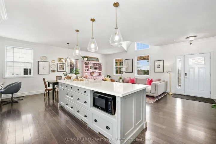 +"PublicRemarks": "Perched atop a scenic hill just outside Cobourg, this family home captures breathtaking panoramic views of the rolling hills of Northumberland County and Lake Ontario. Set close to town, with the added privacy of out-of-town living, this home offers the perfect balance of convenience and peaceful country living. Overflowing with curb appeal, the property makes a striking first impression. A spacious front deck with a charming wooded pergola offers an incredible vantage point for taking in the sweeping views. Inside, bright natural light fills every room, enhancing the open-concept layout with soaring ceilings and a sun-soaked atmosphere, highlighted by a dramatic second-storey window. The well-appointed living and dining areas feature a carpet-free layout, ideal for both everyday living and entertaining. The kitchen stands out as a true centrepiece, spacious and thoughtfully designed with a large island offering prep space and storage, contemporary pendant lighting, matching appliances, ample counter and cabinet space, and a convenient built-in desk area. Just off the kitchen, a versatile mudroom or office includes walkouts to the backyard. Upstairs, three well-appointed bedrooms are complemented by a full bathroom with a double vanity and an offset subway-tile wall detail. The lower levels provide exceptional additional living space, including a bright and spacious family room with walkout, play nook, and office or games area. A further level offers a generous bedroom, full bathroom, media room, and laundry. Outdoors, the sprawling, tree-lined property is designed for enjoyment, featuring a large deck with both open and covered areas, a fire pit, and ample green space, all perfectly positioned to take in the stunning surroundings. A double-car garage, built in 2020, adds modern convenience and functionality. Easy access to amenities along Highway 2 completes this exceptional offering - privacy, space, and incredible views, all just minutes from town."