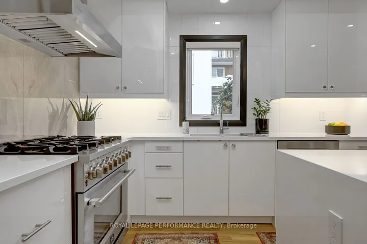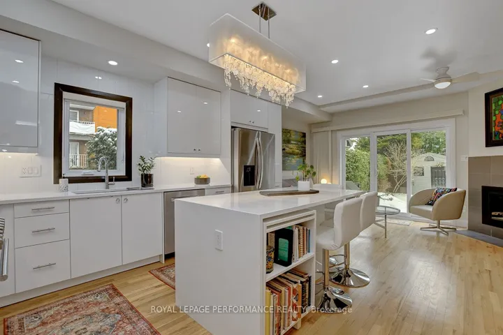 +"PublicRemarks": "Absolutely stunning and tastefully updated end-unit townhouse on extra deep lot in Overbrook half a block from the Rideau River! Bright and airy open-concept main living area ideal for entertaining with large principal sized rooms, floor-to-ceiling windows, timeless hardwood floors, and recessed lighting. Stylish high-end custom chef's kitchen with sleek white cabinetry, quartz countertops with waterfall edge, stunning backsplash, 6-burner gas stove, and centre island with built-in seating. Enjoy the bonus main level family room with cozy fireplace, patio doors leading to south-facing outdoor living space, and lovely sight-lines of kitchen. Updated hardwood staircase with stainless and glass railing. Impressive primary bedroom retreat with wall-to-wall closets. Spa-like ensuite with dual-sink vanity, walk-in glass enclosed shower, and skylight for extra natural light. Well-proportioned secondary bedroom. Spacious loft with skylight and closet can easily be converted back to bedroom or makes for perfect home office. Finished lower-level with convenient mudroom, 3-piece bathroom, versatile family room, and inside entry to oversized 1-car attached garage. Private and fenced south-facing backyard with patio, retractable awning, gas line for BBQ, perennial gardens, and storage shed. Easy access to 417, Ottawa's expansive bicycle path network along the Rideau River, and downtown Ottawa via the Adawe Footbridge to Sandy-Hill. Popular Riverain Memorial Children's Park around the corner. Walk to the community hub at the Rideau Sports Centre where you can eat, do yoga, work-out, swim, play tennis and pickleball. Don't forget about the dog park, basketball courts, splash-pad, skate-park, and the Rideau Winter Trail all at your doorstep. Come see what the fuss is all about in Overbrook in one of Ottawa's best kept secrets."