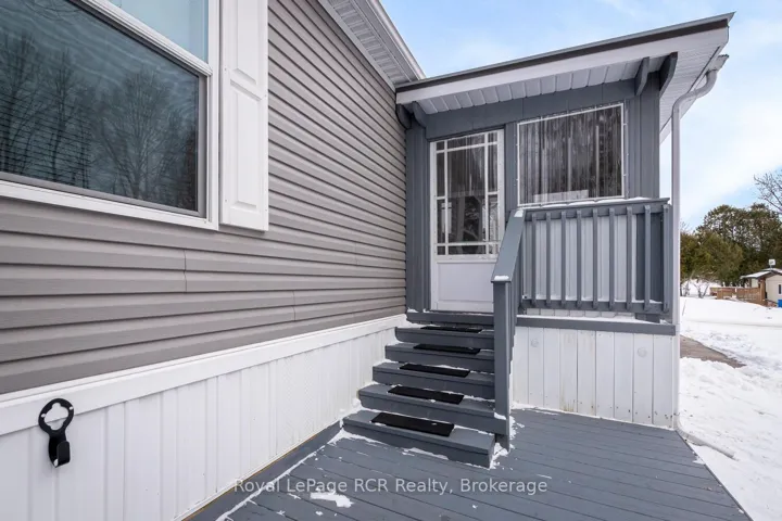 +"PublicRemarks": "Peaceful Country Living Just Minutes from Owen Sound! Enjoy the tranquility of this well-maintained modular home located just 10 minutes south of Owen Sound in a quiet and friendly community setting. The bright living areas create a warm and welcoming atmosphere and open plan kitchen/living/diningroom make entertaining easy. This comfortable home features a spacious primary bedroom with ensuite bathroom and plenty of closet space. The guest bedroom/office/den offers a practical layout ideal for downsizers, retirees, or those seeking a peaceful retreat. Step outside to relax on the cozy front porch, perfect for enjoying morning coffee. The enclosed side porch provides easy access into the home from the private paved driveway . A mudroom/laundry room is conveniently situated by the side entrance. Surrounded by nature yet close to town amenities, this property offers the perfect balance of country charm and convenience. Lease fee $700.00 monthly, plus $45 water and $133.92 property tax."