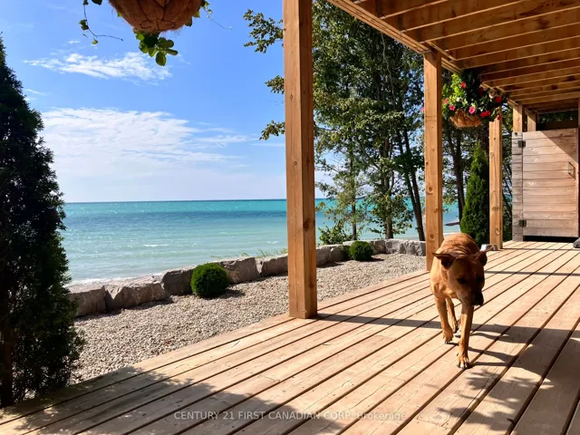 +"PublicRemarks": "LAKEFRONT BLISS ON THE SHORES OF LAKE HURON - AMAZING 110' OF LAKE FRONTAGE! SAND, SERENITY AND SUNSETS - THIS IS LAKE LIFE AT ITS FINEST.. HEAR THE WAVES! Nestled just north of Goderich in the coveted LAKELAND ESTATES, this virtually lake-level cottage with BIG 110' lake frontage offers direct access to one of the area's widest, most walkable/unimpeded sandy beaches. No stairs, no cliffs-just pure shoreline magic. Step inside this bright and beautifully updated 3+bedroom, 1.5-bath retreat and feel the charm of authentic cottage living. The open-concept kitchen and living room flow seamlessly onto a spacious lake-facing deck, while the lower level offers a second finished living area and its own panoramic deck-perfect for entertaining or unwinding with a glass of wine as the sun dips below the horizon. Features You'll Love: Two expansive decks with unobstructed lake views, Wall of windows in the main living/dining area & lower level, New studio den (2022) and new basement bedroom (2023), Wraparound decking, new staircase (2020), and armour stone landscaping, Cedar outdoor rain shower on lakefront deck... it's a beauty! Private laneway to drive boat/beach gear directly to the shore, Turnkey sale includes kayaks, life jackets, TV, beds, appliances, Weber BBQ & more, Lots of privacy with forest south and trees area on north, and very low traffic on the beach throughout all seasons, Outdoor stone fireplace on separate deck overlooking own forest and lake, a great shaded area to cool down during peak summer days, New well installed in 2025. New sewage tank fully inspected by Municipality in 2025, Metal roof with many years of life, Main renovation done in 2017 that included new decks, plumbing and electrical. Private driveway with parking for 3/4 cars. Att. heated 22'x12' utility garage space for beach equipment. Low Maintenance cottage with no grass cutting, low complexity! Unbeatable value-priced below comparable 'on bluff' resales and leading its category in the area!"
