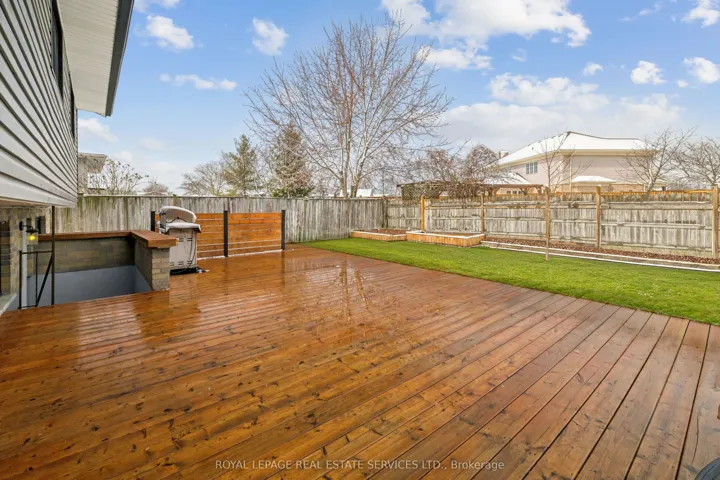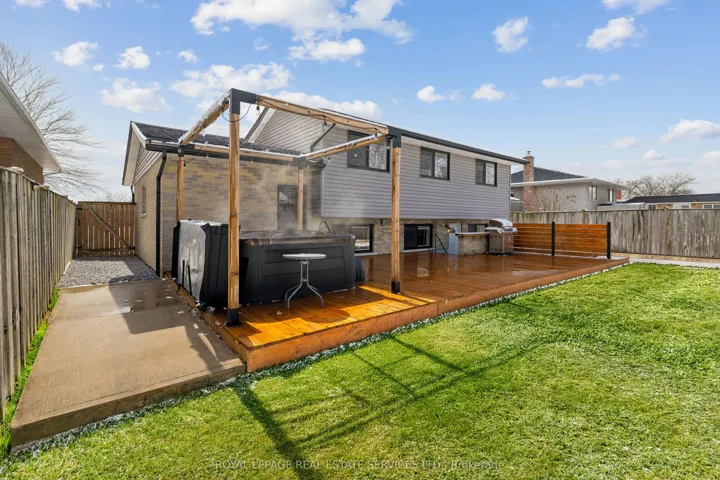 +"PublicRemarks": "Welcome to this immaculate home in Welland's highly sought-after southwest neighbourhood, offering 3 bedrooms and 2 newly updated bathrooms. The home features a brand-new kitchen (2026) with quartz countertops, backsplash, and stainless-steel appliances. The finished lower level boasts new flooring (2026), oversized windows, and a separate entrance with a convenient backyard walk-up. Interior upgrades include new doors with modern hardware, while the spacious primary bedroom offers double closets. Major updates provide peace of mind, including windows (2020), eaves and garage door (2020), electrical panel (2017), furnace and A/C (2018), and hot water heater is a rental (2022). The second level showcases 3/4-inch engineered hardwood, and the family room flooring was updated in September 2020. Enjoy outdoor living with a front deck (2019), 12' x 36' rear deck with hot tub, fully fenced yard, new gates, and a 10' x 10' shed. Carpet-free throughout, this move-in-ready home truly checks all the boxes. Say YES to the address!"