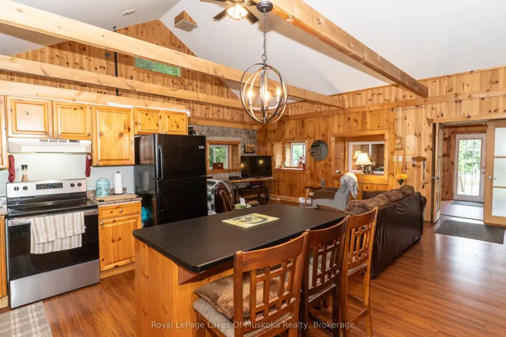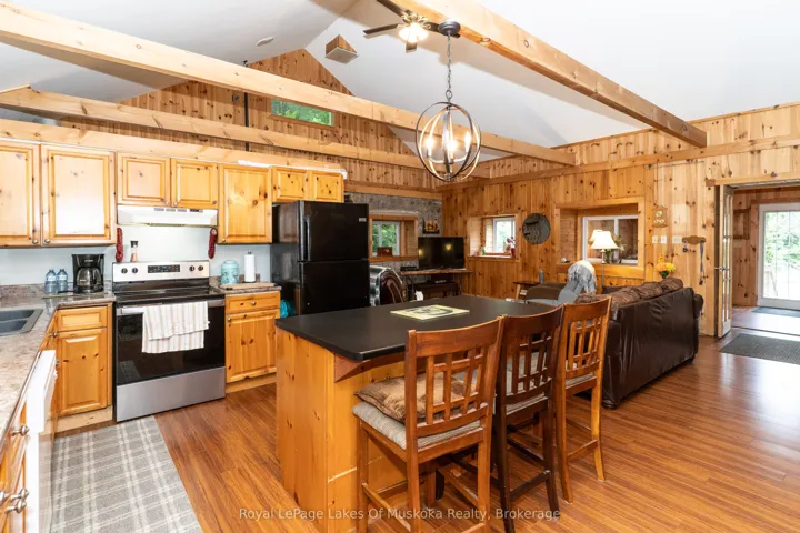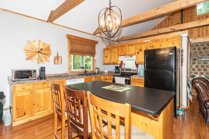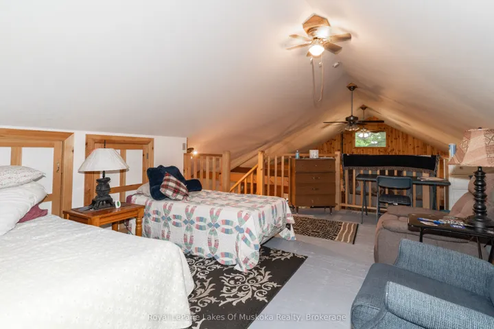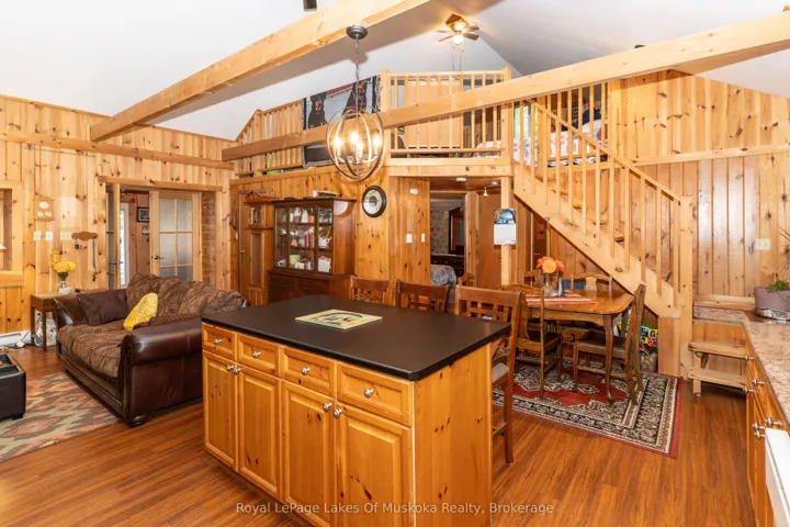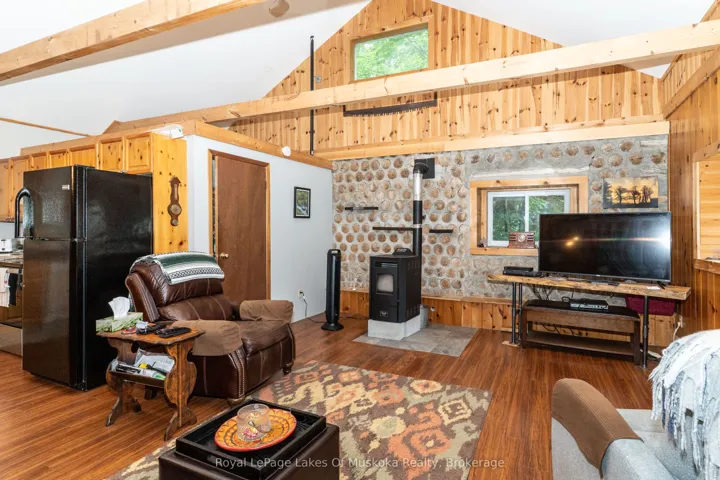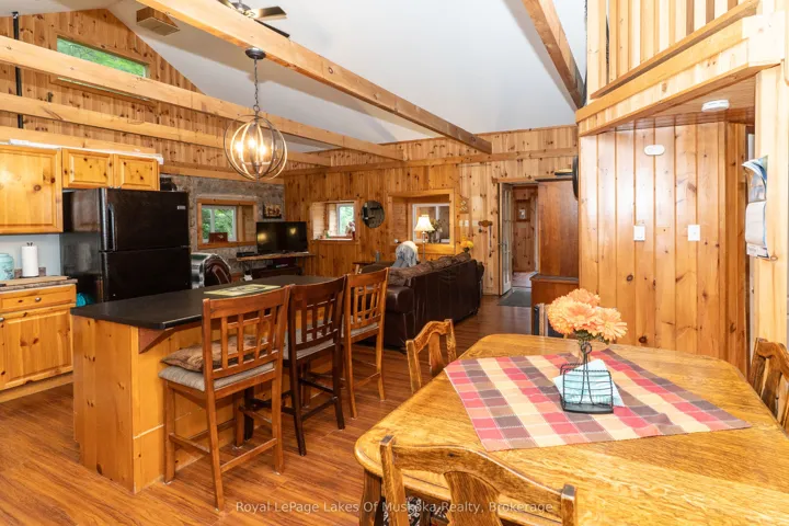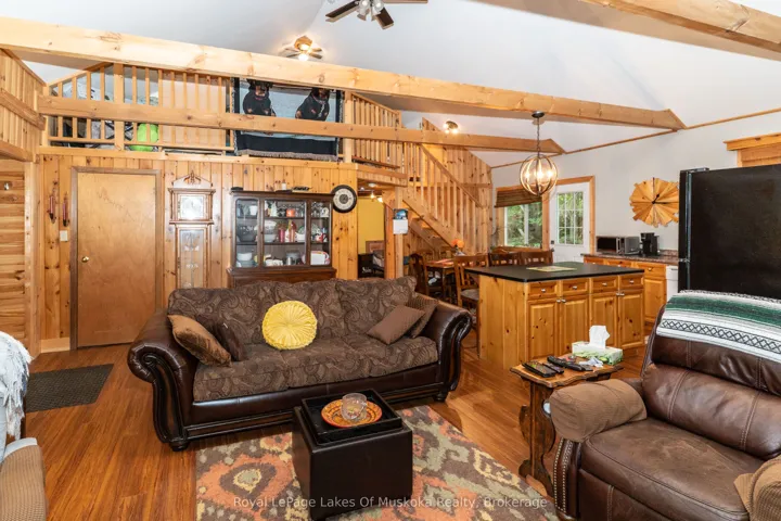 +"PublicRemarks": "Looking for your first home? Or wanting to downsize? This is the opportunity you have been waiting for! A stacked log open concept bungalow with a bonus loft space! From the front deck-enter a fully insulated sitting/sunroom/mudroom, a great space to hang all your outdoor gear before entering through the frosted glass double French doors. Cathedral ceilings immediately meet the eye upon entry into this lovely pine-lined home. Well appointed kitchen featuring a generous size island, dining area and spacious living area. Two bedrooms, one bathroom, a utility/laundry room all heated with a pellet stove and electric baseboard heating. Lots of windows, with 20 deep window wells for plant lovers. The bonus loft space can serve whatever purpose you have in mind! Outside for the handyman is a 12x12 workshop complete with upstairs storage and a 10x10 garden shed. Close to public access & beaches on Lake Muskoka or a quick drive into Port Carling!"