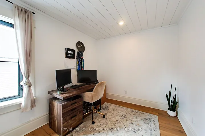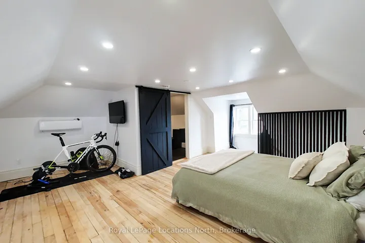 +"PublicRemarks": "Fully renovated red brick beauty featuring 4 Bedrooms plus den and 2 and a half baths. Main floor is an entertainers dream, with open floor plan and seamless flow between spacious principal rooms with 9' ceilings. Main floor 2pc bath and laundry room with easy access to the fully fenced rear yard, deck and hard scaped patio - perfect for hosting outdoor gatherings. Second floor features three generous bedrooms, a modern full 5pc bath with a flex space, perfect for home office - leading to the second storey balcony. Third floor is host to the Primary Bedroom, a secluded space for genuine relaxation with custom 3pc Ensuite Bath. Careful consideration has preserved the traditional solid wood pocket doors and main entrance staircase, trims and mouldings while applying the conveniences of a new kitchen, stainless steel appliances, baths, all windows, electrical, gas fire place, flooring and everything in between. As an added bonus, a separate detached fully insulated garage (18' X 24') across the street at 33 Marshall St, provides many opportunities for parking, a home gym/office space or storage. A short stroll to many restaurants and shops, Meaford Hall and local hiking trails along the Big Head River, the famous Beautiful Joe Park and Georgian Trail linking Meaford to Thornbury and Collingwood. 20 minutes to Ski Resorts and Collingwood to the East and 20 minutes to Owen Sound to the West."