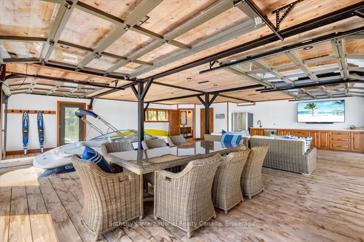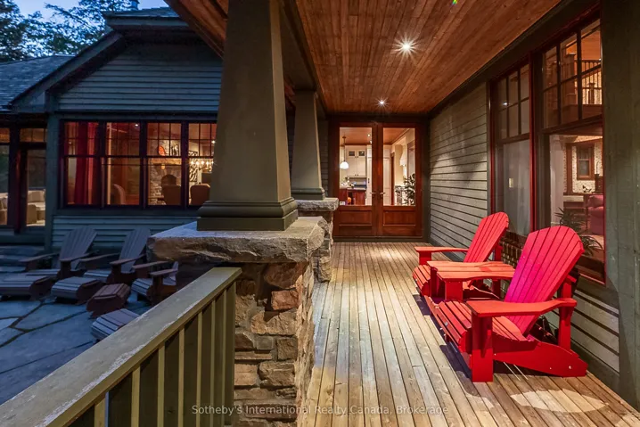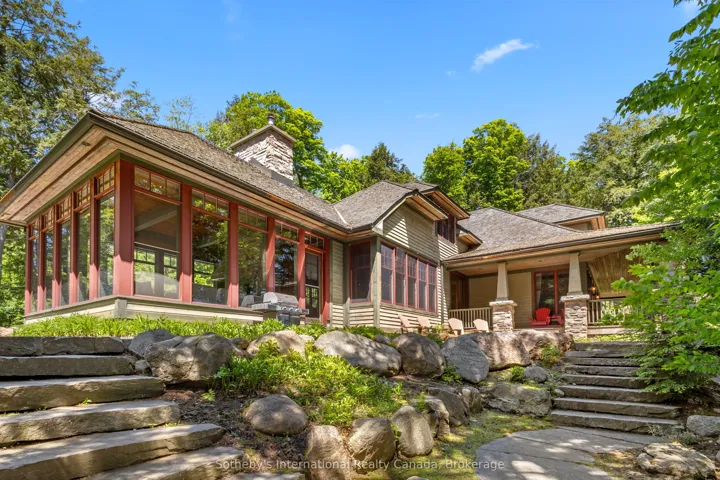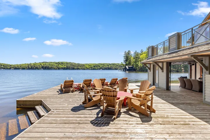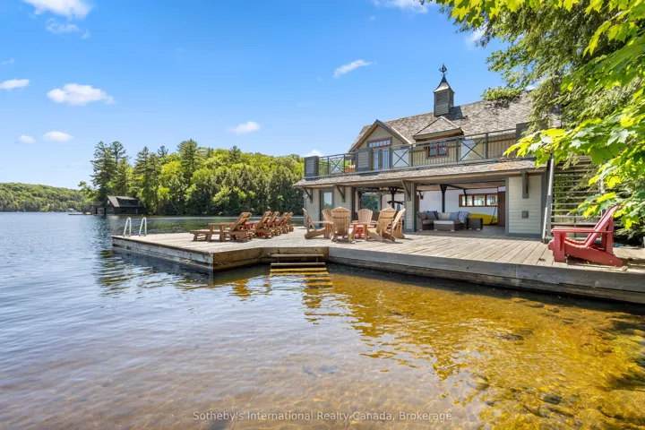 +"PublicRemarks": "On the coveted shores of Lake Rosseau in Stormy Point, this exceptional waterfront property presents a rare opportunity within one of Muskoka's most exclusive enclaves. Spanning over 2 acres with 433 ft of southwest-facing shoreline, the setting is defined by granite, mature pines, and sweeping sunset views. A sense of arrival is immediate. Upon entry, a dramatic great room unfolds, where vaulted ceilings and expansive windows frame the lake. A striking stone fireplace anchors the space, naturally drawing family and guests together. Flowing from this central space, the adjoining kitchen offers both scale and comfort, with generous prep space, a dining area, and a sitting area centred around its own fireplace. A butler's pantry supports effortless entertaining, while doors from both the kitchen and the great room extend the living area to the porch. Just beyond, the Muskoka room continues the living space, featuring a fireplace and built-in BBQ-an inviting setting for effortless, year-round entertaining. Privately positioned on the main level, the primary suite occupies its own wing with a walk-in closet, ensuite, and direct access to the porch. Above, four additional bedrooms include a guest suite with its own ensuite and a second primary bedroom, offering comfort and flexibility for family and guests. Days unfold effortlessly at the water, swimming, boating across Lake Rosseau, and watching the sun set over the shoreline. A two-storey boathouse extends the experience, offering a private retreat for guests with 1-bedroom, 1-bathroom living accommodations above and an additional bathroom on the main level, perfect for enjoying long afternoons on the upper deck or relaxed days at the dock. There is a quiet ease to life here-morning coffee on the porch, afternoons on the dock, and evenings gathered as the light fades across the lake. Defined by its setting, scale, and enduring appeal, this is a property to be held and enjoyed for generations."