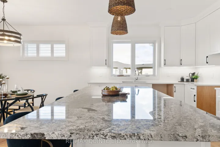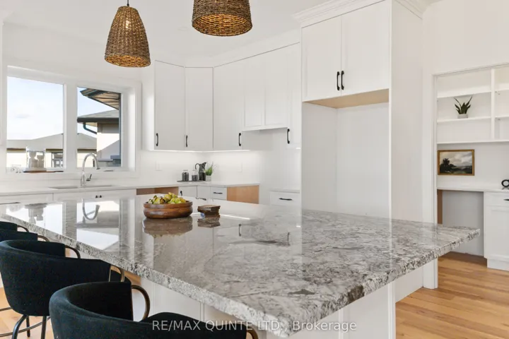 +"PublicRemarks": "This striking executive stone and stucco home offers scenic water views and is located in the desirable "Watermark on the Bay" community in Prince Edward County - just minutes from Belleville and close to trails, parks, vineyards, and the Bay of Quinte. Residents of this elegant enclave enjoy private access to a marsh-front walking trail along the shoreline. Built with energy-efficient Insulated Concrete Form (ICF) construction and a forced air electric heat pump, the home is designed for year-round comfort. Inside, you'll find wide-plank wood flooring, quartz countertops, quality cabinetry, and a striking granite island in the contemporary kitchen. The spacious layout includes a walk-in butler's pantry, a generous mudroom with laundry, and a beautifully appointed 5-piece ensuite. Outdoor living is just as impressive, with a covered front porch and a rear deck featuring glass railings. The bright and open lower level has drywalled walls and is ready for your finishing touch. An oversized attached garage - nearly 1,000 sq. ft. - offers high ceilings, large windows, and ample space for storage or hobbies. With municipal water, Bell Fibe Internet, and a premium location in one of the area's most exclusive neighbourhoods, this home delivers comfort, style, and lasting value."
