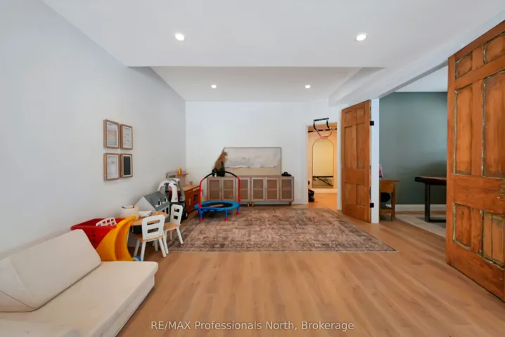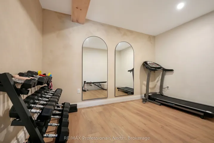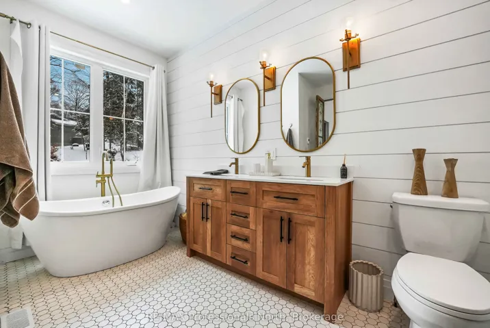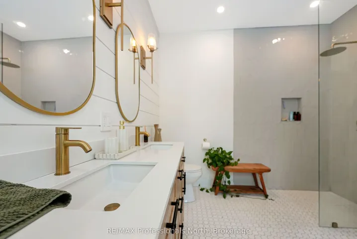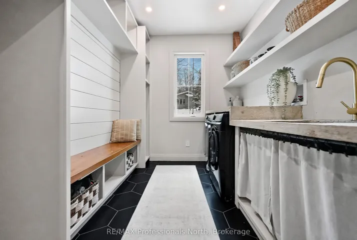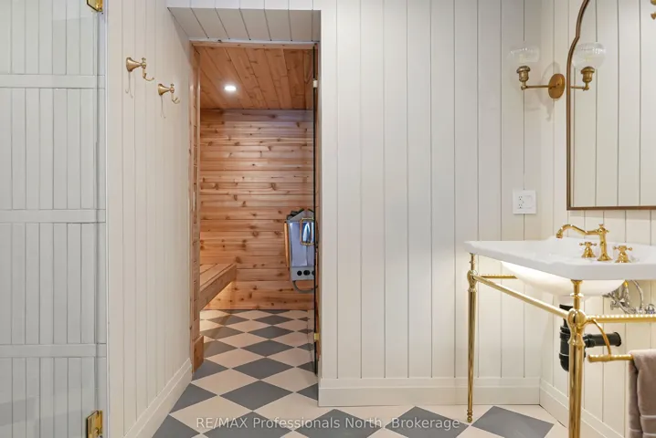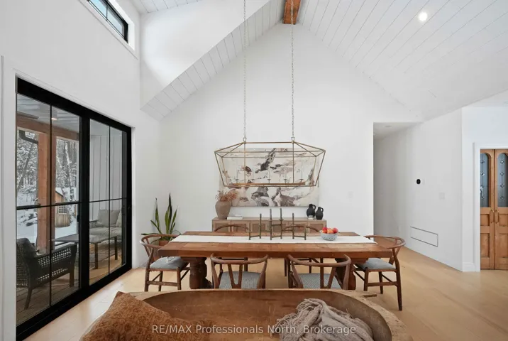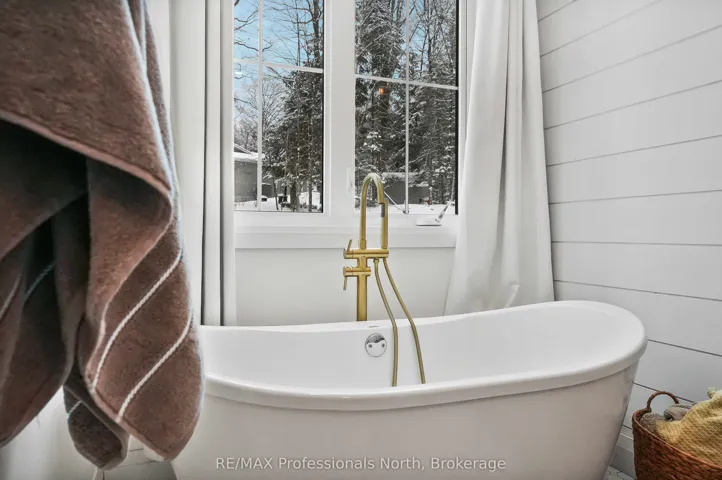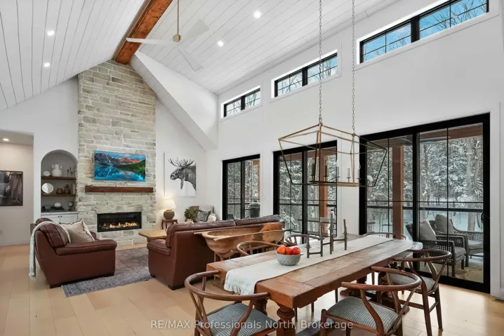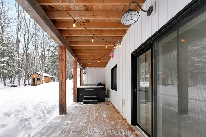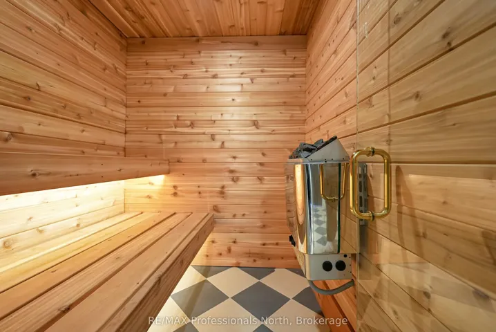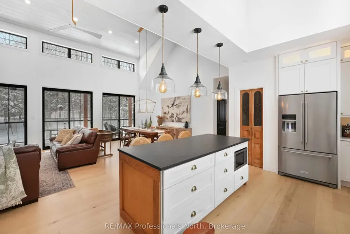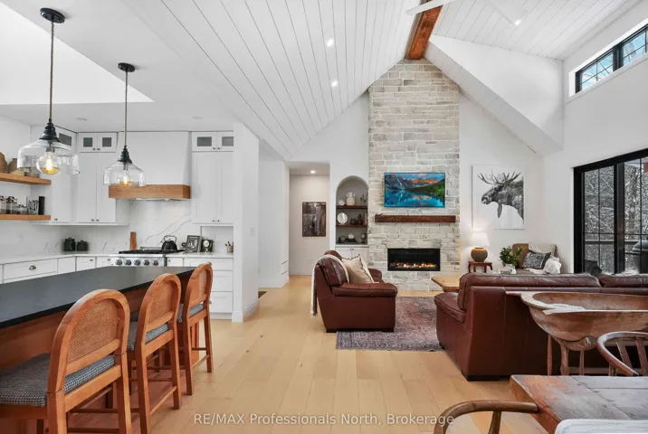 +"PublicRemarks": "Built in 2021, this stunning modern home sits on a quiet cul-de-sac in the village of Haliburton. Soaring cathedral ceilings, white shiplap detailing, and a dramatic wall of black-framed floor-to-ceiling glass doors create a bright, airy great room anchored by a stacked stone fireplace with reclaimed wood mantle - warm, stylish, and made for gathering, while the covered rear deck with timber posts and glass railings brings the outdoors in. The Pinterest worthy chef's kitchen delivers on every detail: Stone countertops and backsplash, a gas range, white shaker cabinetry with brass hardware, and a large island with seating perfect for entertaining. The walk in Coffee nook in the kitchen is practical and charming with antique stained glass wood doors and additional storage. The primary suite is a true retreat, featuring a spa-inspired ensuite with freestanding soaker tub, double vanity with gold fixtures, and a generous walk-in closet. Two additional well-appointed bedrooms and two beautifully finished bathrooms round out the upper level. Entering from the attached double garage, a functional mudroom and laundry room with dark built-ins add everyday ease. The private backyard backs onto mature trees and a flowing creek with plenty of room to roam. The finished walkout basement expands the living space significantly - offering a rec room, home office, and gym plus patio to the backyard with seating and hot tub. And for the ultimate year-round indulgence, this exceptional home also features its own private in-home sauna in the tastefully styled basement bathroom. Homes like this don't last - call today to book your private viewing before it's gone."