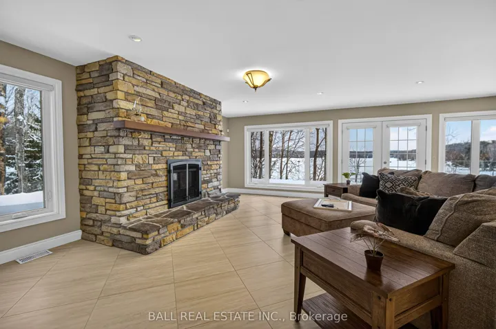 +"PublicRemarks": "Welcome to 13540 Highway 35 in Minden, an exceptional newly built waterfront home set on 0.63 of an acre with coveted east exposure, offering breathtaking views of Mountain Lake-perfect for boating and waterfront enjoyment on a two-lake chain. This impressive custom-built 4-bedroom, 2-bath home offers over 3,000 sq. ft. of beautifully finished living space, perfectly designed for year-round enjoyment. Step inside to a bright, open-concept main floor featuring a stunning kitchen with granite countertops, custom cabinetry, and a large breakfast bar-perfect for entertaining. Dining area with floor to ceiling cabinets for extra storage. The spacious living room, complete with a fireplace, walks out to a spectacular lake-facing wraparound composite deck with sleek glass railings and in-deck lighting, offering breathtaking panoramic views and unforgettable sunrises. A spacious primary suite and second bedroom also feature walkouts to the deck, creating seamless indoor-outdoor living. Large 4pc bathroom with soaker tub, main floor laundry and entry to the oversized double car garage. The fully finished lower level offers incredible additional living space with a cozy, efficient wood-burning fireplace, two generous bedrooms, 5pc bathroom and multiple walkouts to a beautifully designed interlock patio. The meticulously landscaped, tiered lot showcases gabion stone walls, perennial gardens, walkways, a firepit area, and excellent shoreline access for enjoying the lake. Additional features include durable stone exterior, metal tile roof, in-floor heating throughout, a high-efficiency forced air furnace and central air conditioning. An oversized double-car garage with ample storage and private basement access adds to the home's functionality. Conveniently located just minutes from Minden, you'll enjoy easy access to dining, shopping, groceries, medical services, and more. A rare opportunity to own a stunning waterfront property where lasting family memories are made."